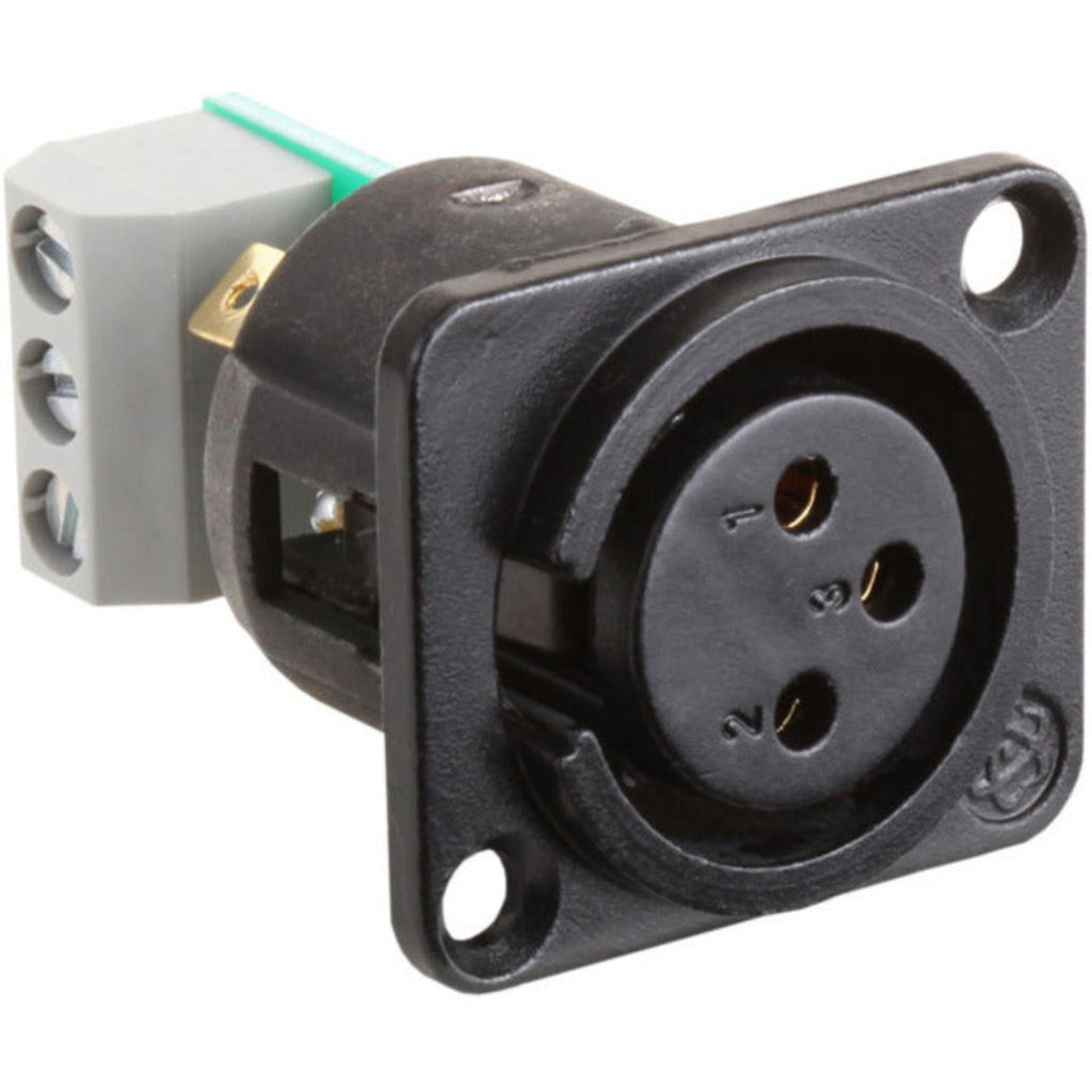 The AMS-XLF is a metal female XLR connector equipped with a high quality terminal block for audio connections. The connector mounts in AMS mounting frames and in standard D-style cutouts.