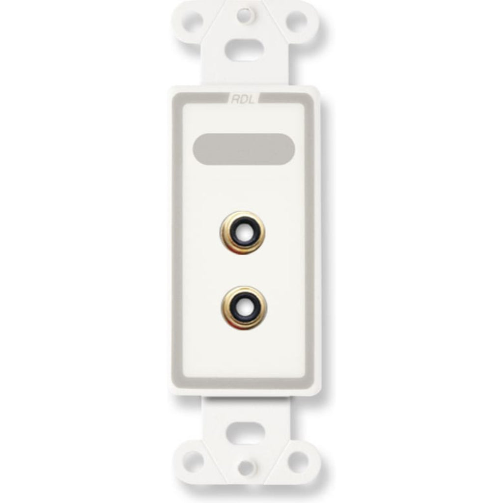 The D-PHN2 Dual Female Phono Jacks on D Plate (Solder Type) from RDL is a D-style connecter plate with (2) female phono jacks. This unit can be mounted in WB-1U and WB-2U Universal Wall Boxes. The plate and the wall box it is mounted in can be covered by a CP-1 or CP-2 cover plate to achieve a clean aesthetic look.