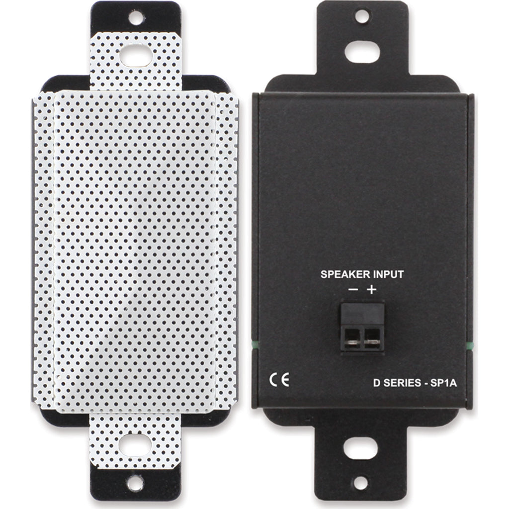 The D SERIES-SP1A is a compact 8 ohm loudspeaker that delivers rich, detailed sound in Decora-compatible wall or chassis mounts. The driver is constructed of materials found in premium larger speakers. The unique steel enclosure provides full baffling in a tightly sealed rigid structure. This produces sonic presence within an extended frequency range expected from larger speakers. Internal filtering rolls off out-of-band frequencies to reduce distortion and increase peak power capability. Dispersion covers a hemispherical area of nearly 180 degrees with the speaker mounted in a wall.
