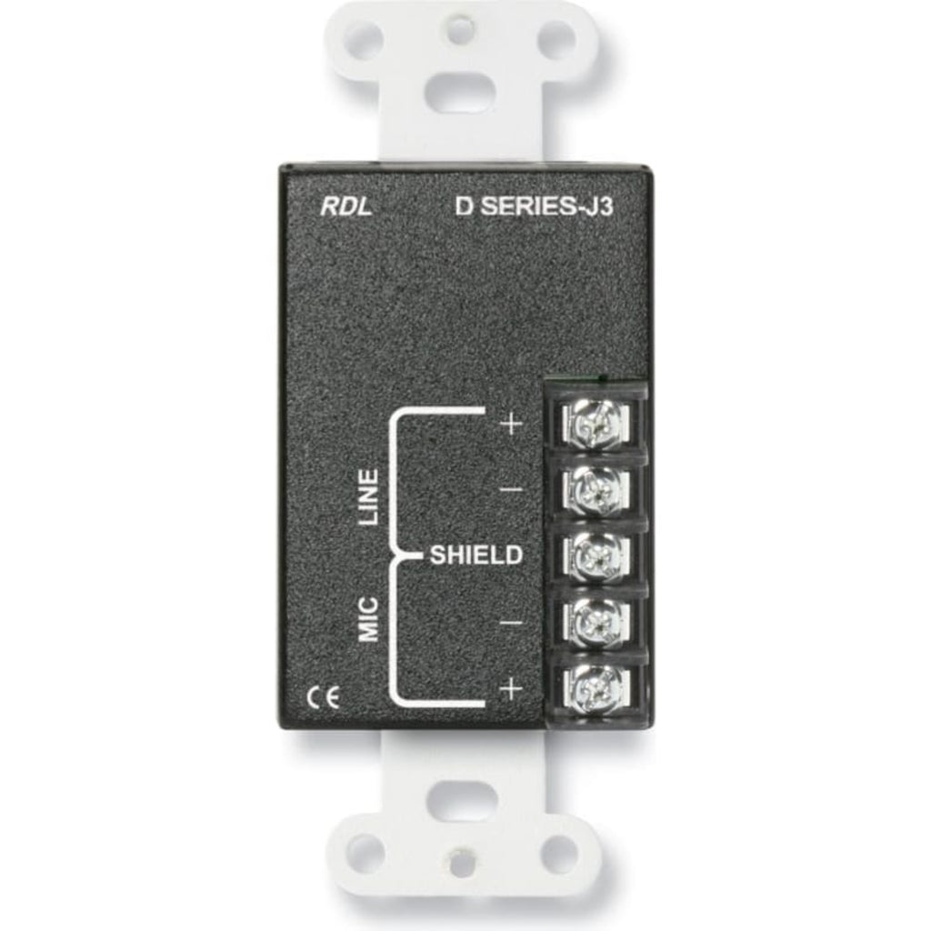 RDL DB-J3 Mic/Line XLR & RCA Input Assembly on Decora Plate (Black)