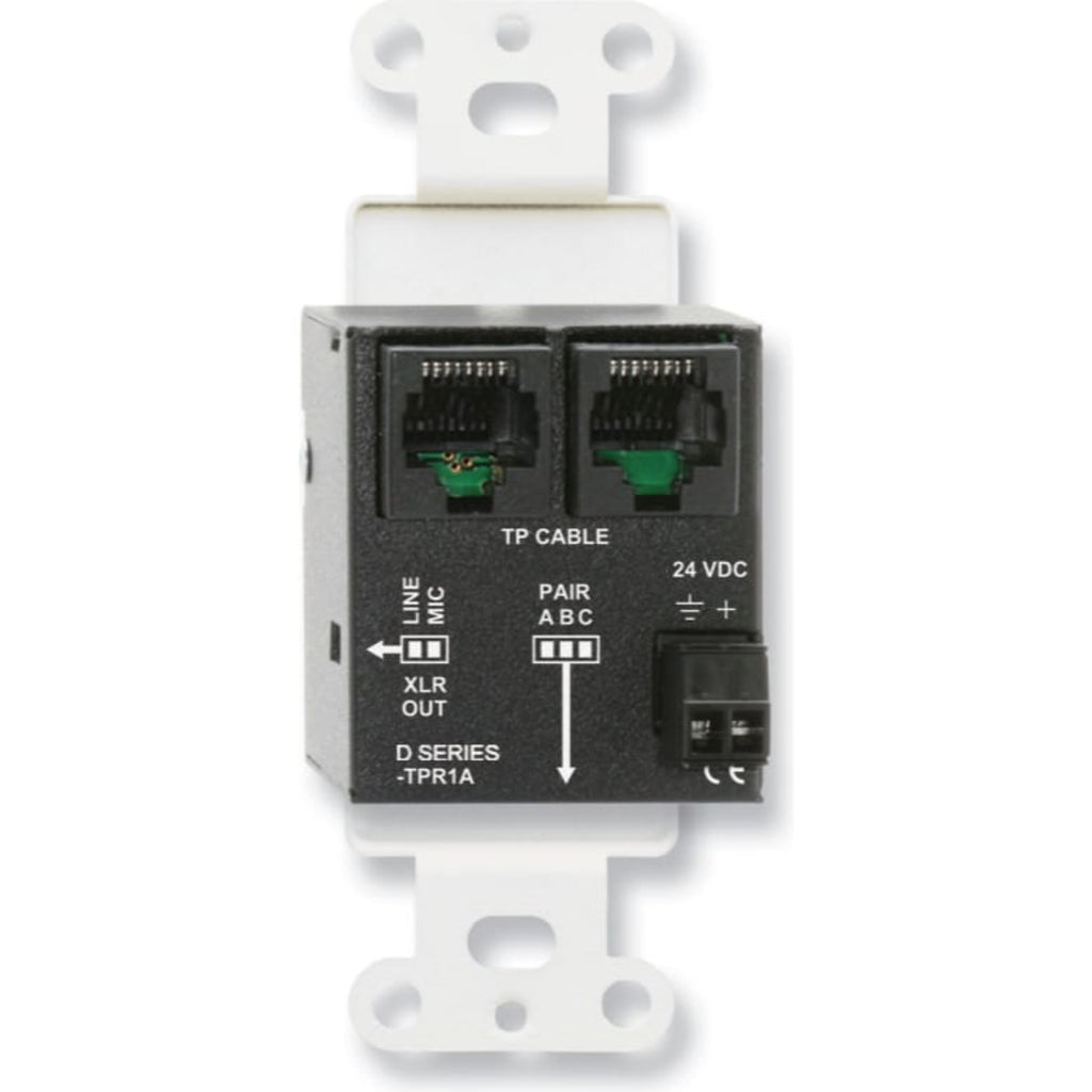 Active Single-Pair Receiver on Decora Wall Plate - Twisted Pair Format-A - XLR Microphone/Line Output - Black