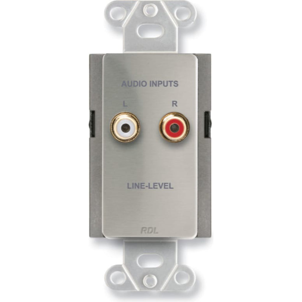 Line Input Assembly on Decora Wall Plate - RCA Jacks, Terminal Block - Stainless Steel Finish