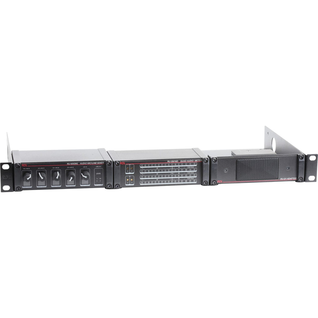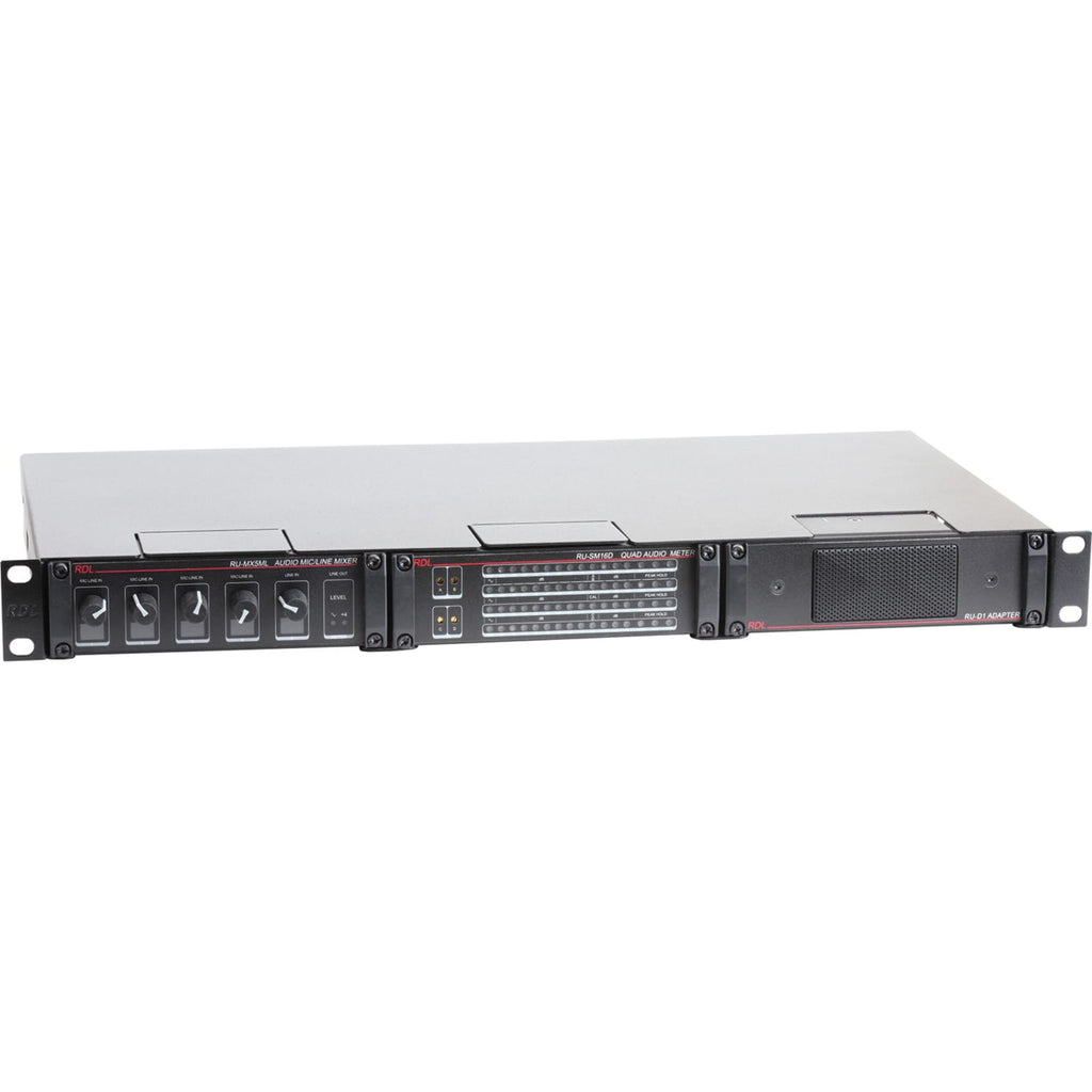 The RC-1UR is a 1RU utility chassis for mounting RDL modules and accessories. The front and rear each feature three RACK-UP mounting bays. The mounting bays fit RACK-UP series products and AMS accessories (using AMS-HR4 adapters, available separately). The interior provides space to mount various STICK-ON and TX series modules.