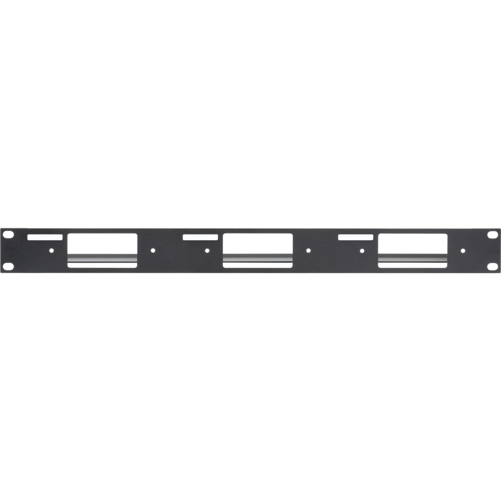 The RM-D3 is a 1 RU rack panel that allows the mounting of 3 Decora products, such as RDL remote controls and D-Series connector plates. The installer can label each installed module behind an included protection lens.
