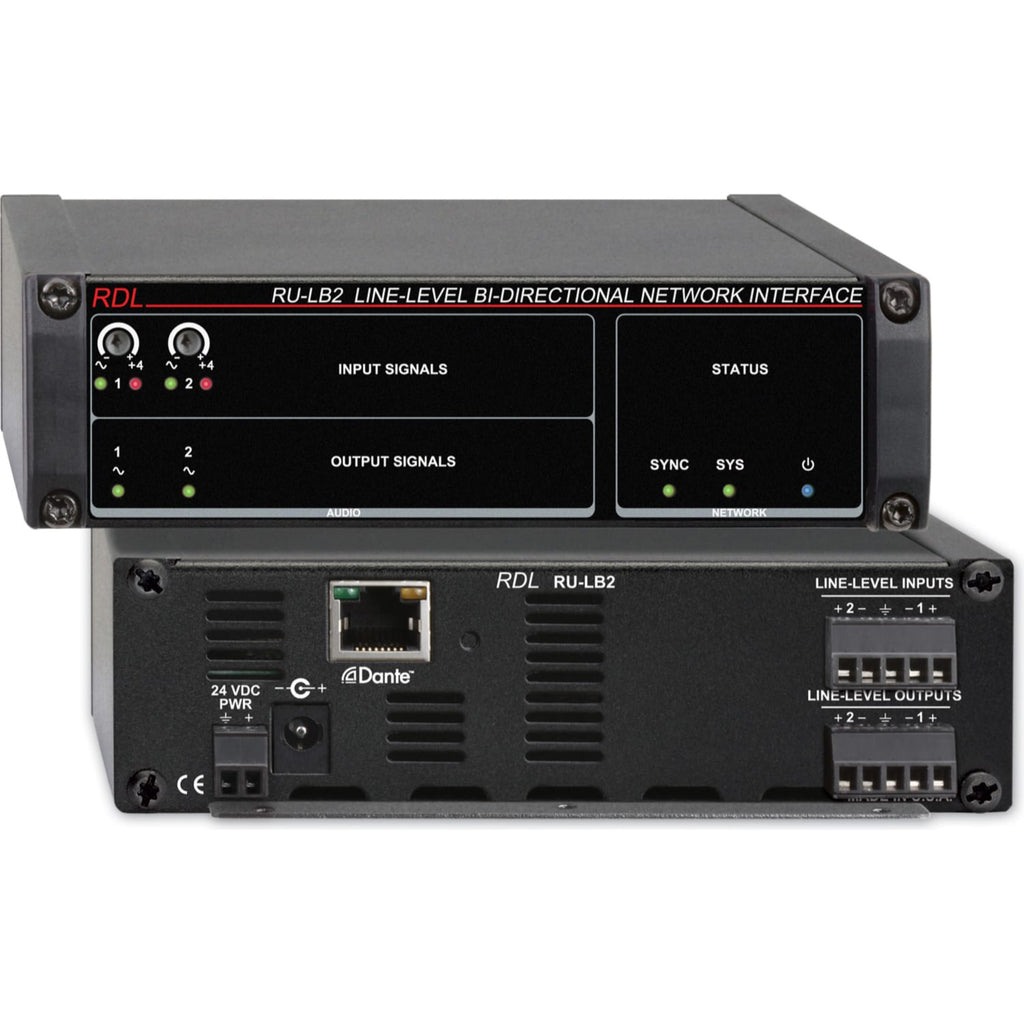 APPLICATION: The RU-LB2 is a high quality converter that provides professional line-level outputs from two Dante network received audio channels. It also converts two professional or consumer line-level sources to Dante network audio channels.