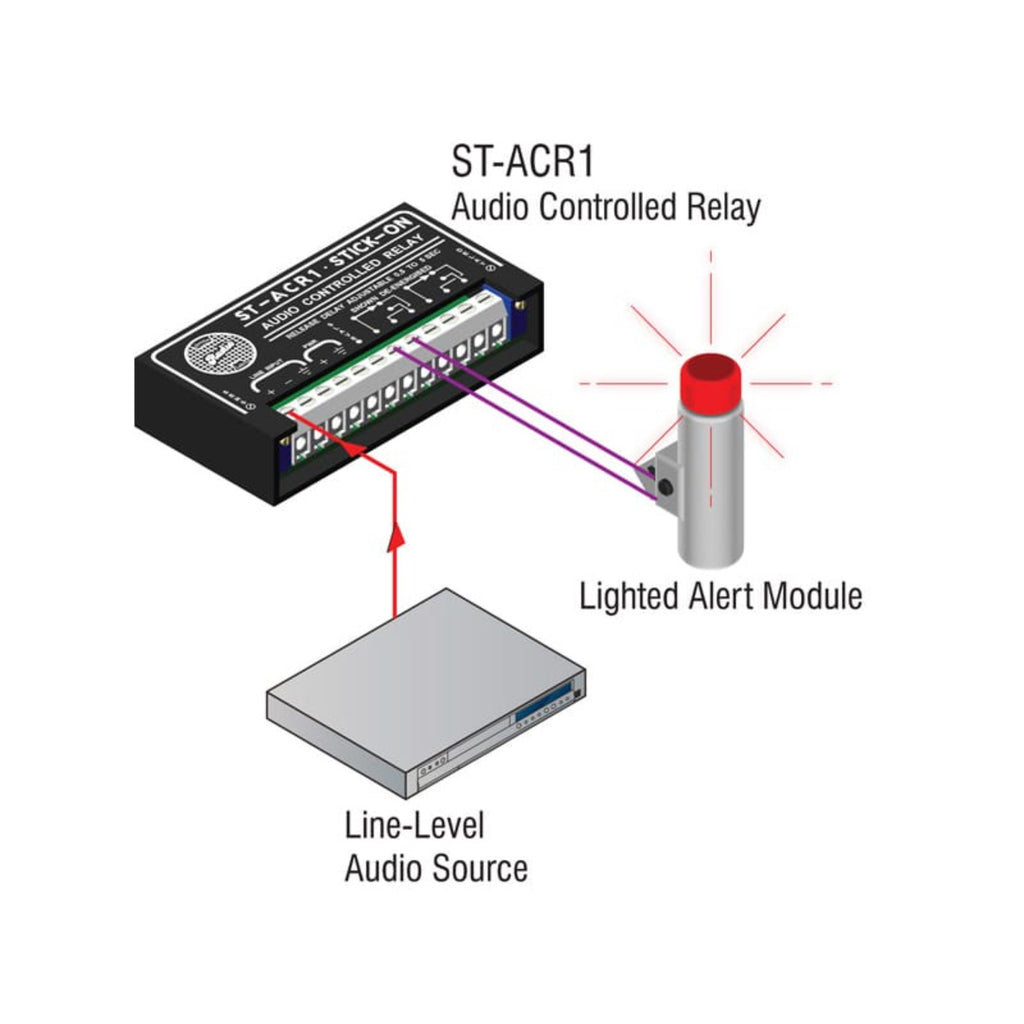 The ST-ACR1 is an Audio Controlled Relay in the STICK-ON series. These products are designed for quick, convenient installation, and reliable operation in a variety of control applications. The ST-ACR1 is designed to switch on line level sources.