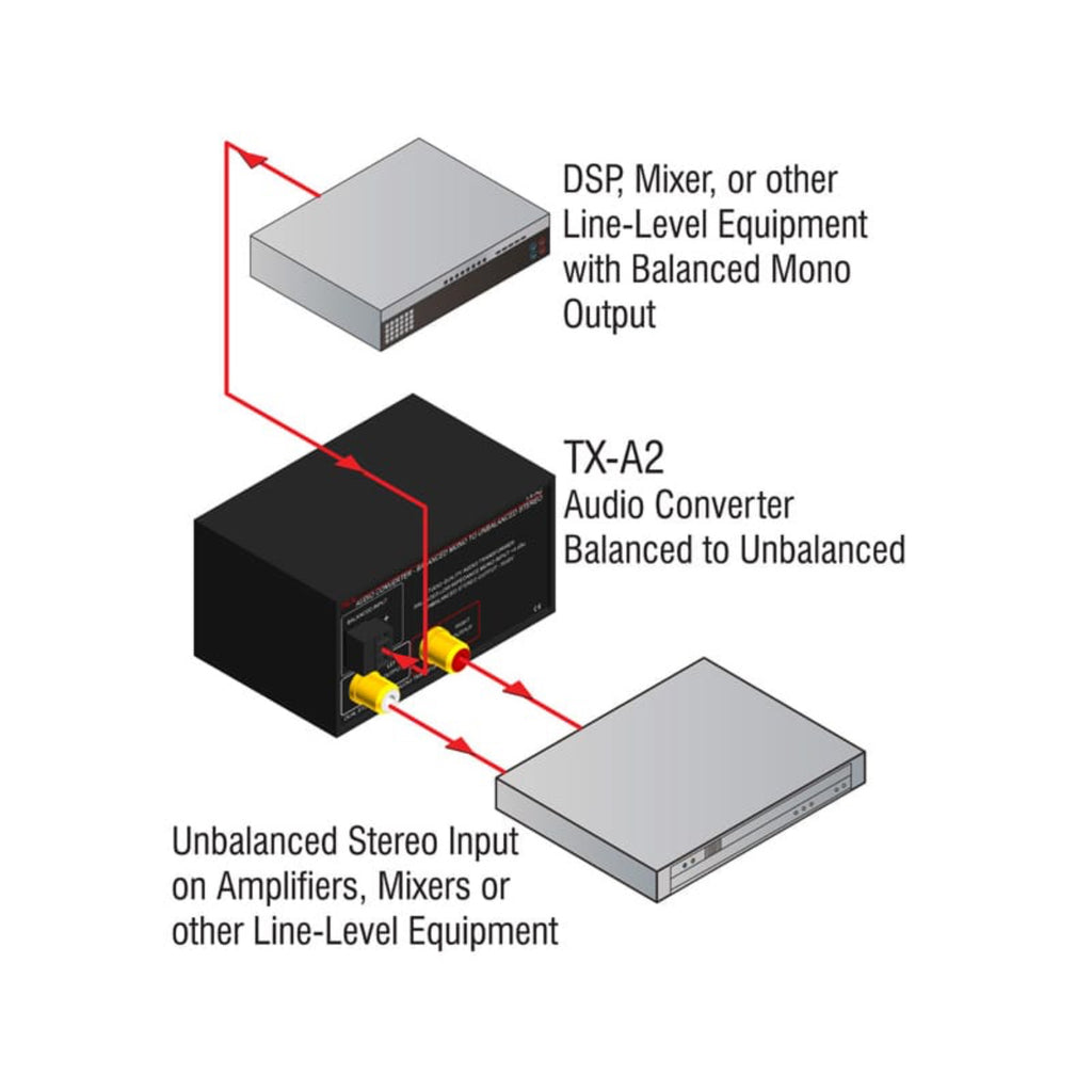 The TX-A2 is the ideal choice in installations requiring passive isolation and level attenuation between a professional balanced line-level mono source and consumer equipment unbalanced inputs.