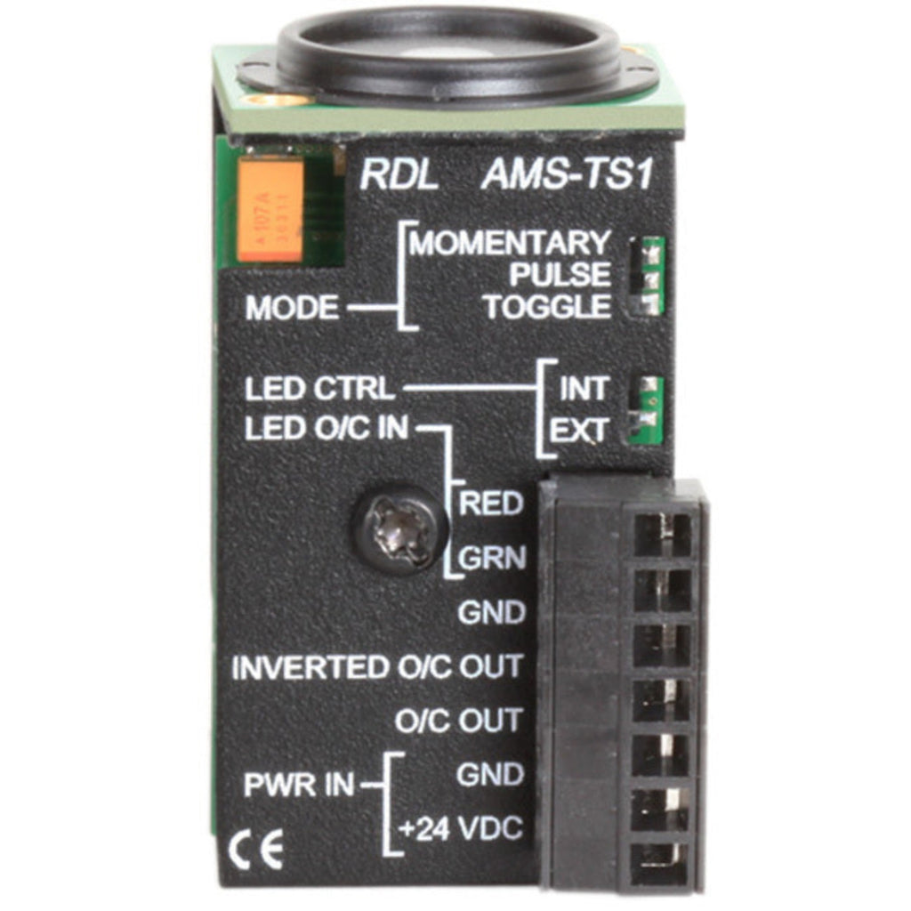 The AMS-TS1 operates from ground-referenced 24 Vdc. The module is designed to mount behind the front panel of industry products that provide D-style cutouts.