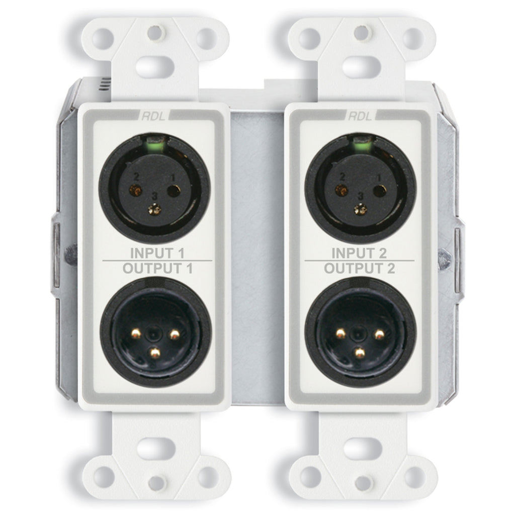 The DD-RN42 is a professional grade product with RDL mic preamplifiers for studio quality fidelity and low noise performance, coupled through XLR jacks housed in a steel chassis with dual powder-coated or stainless steel Decora front plates.
