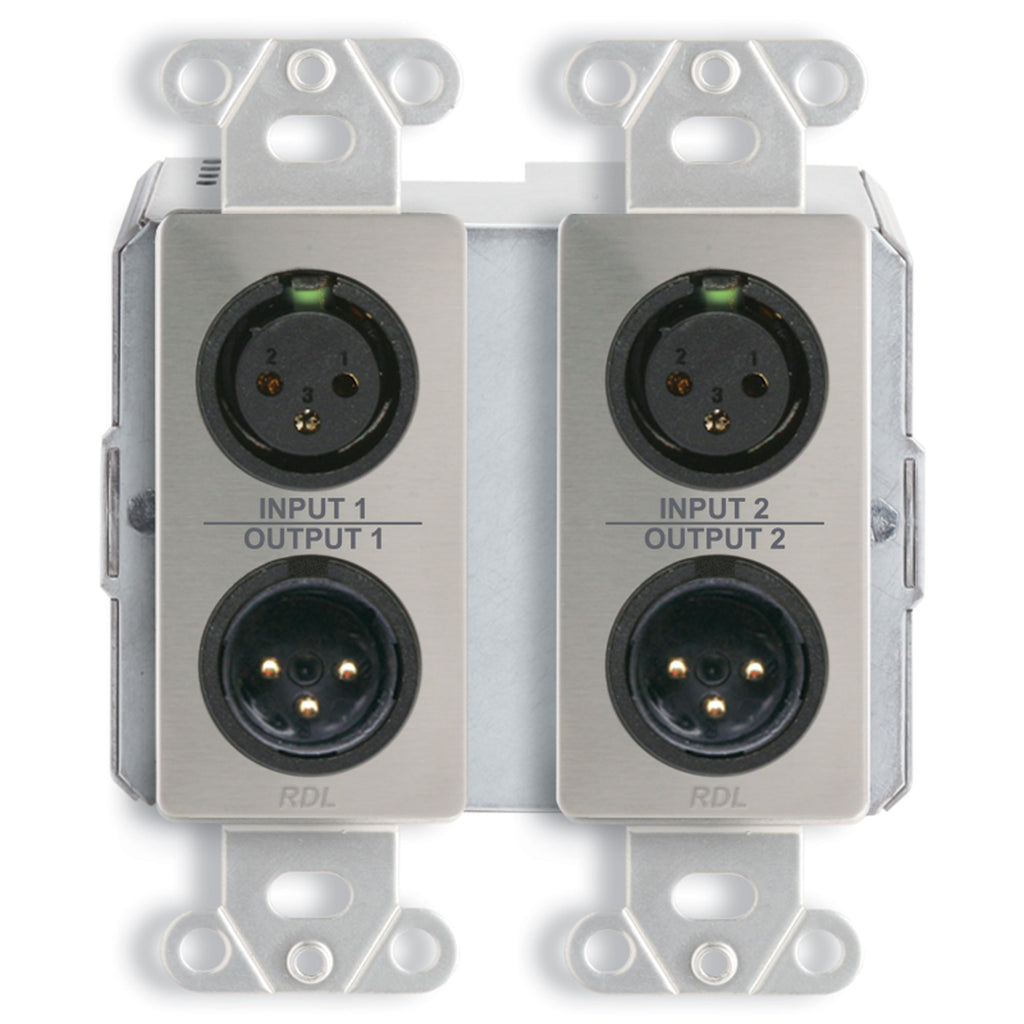 The DDS-RN42 is a professional grade product with RDL mic preamplifiers for studio quality fidelity and low noise performance, coupled through XLR jacks housed in a steel chassis with dual powder-coated or stainless steel Decora front plates.
