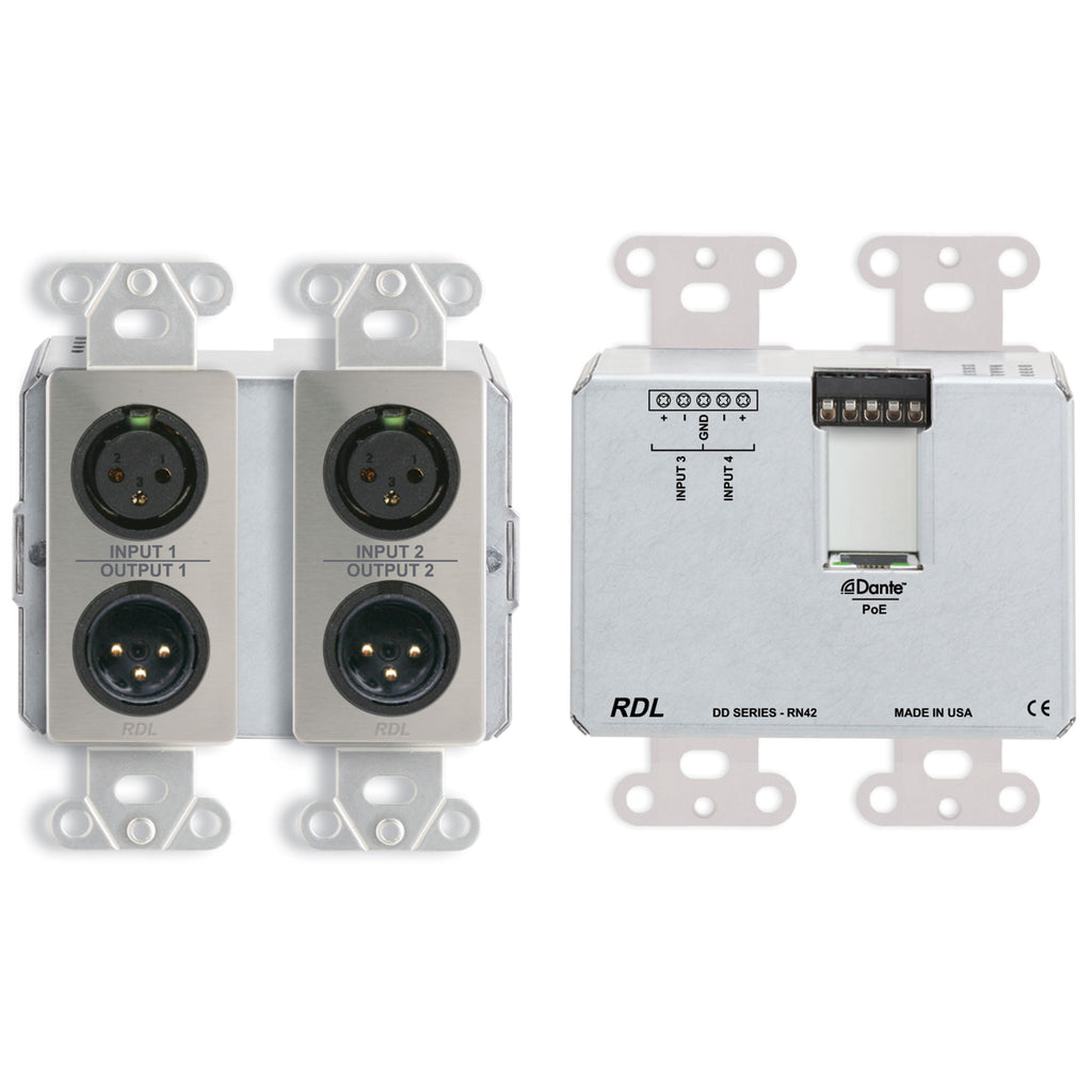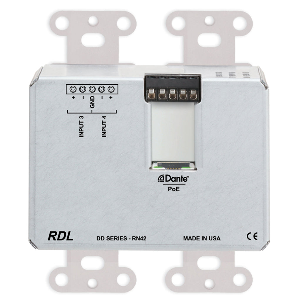 RDL DDS-RN42 Bi-Directional Mic/Line Dante Interface 4x2 on Decora Plate (Stainless Steel)