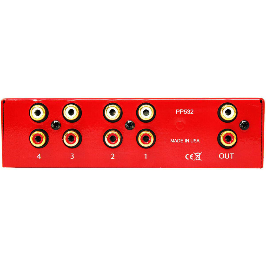 The PP532 pre amplifier, is a completely passive design with absolutely nothing added to your audio signal path. That means NO power required, NO electronics used and NO distortion will ever be added to your music. It is the most effective way to reach high-end audio quality, and you will save enough coin that you can buy the more expensive speakers you have been eyeing. The chassis is made from .090 steel, meaning it is 3 times thicker than most chassis. Four pairs of RCA inputs allow for connection to all your music sources, and one pair of gold plated RCA jacks to go to your amplifier. All this and it is 100% Handcrafted in Salt Lake City, UT. The audiophile in you will approve of the 0% distortion added and 100% original signal preservation, but the cheapskate in you will use the savings to buy more gear, of course.