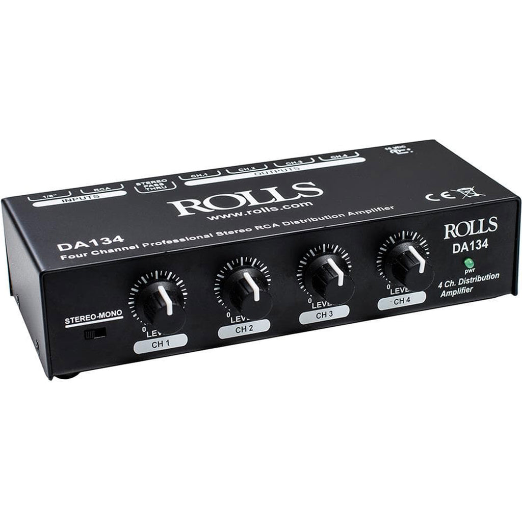 Designed for high end RCA audio distribution the DA134 is a four channel distribution amplifier. RCA and 1/8" inputs that can be switched from mono or stereo. The DA134 will distribute a mono signal to eight outputs, or a stereo signal to four stereo outputs. The outputs are designed to drive line level signals. The DA134 is the perfect distribution amp anywhere high quality sound distribution is required.