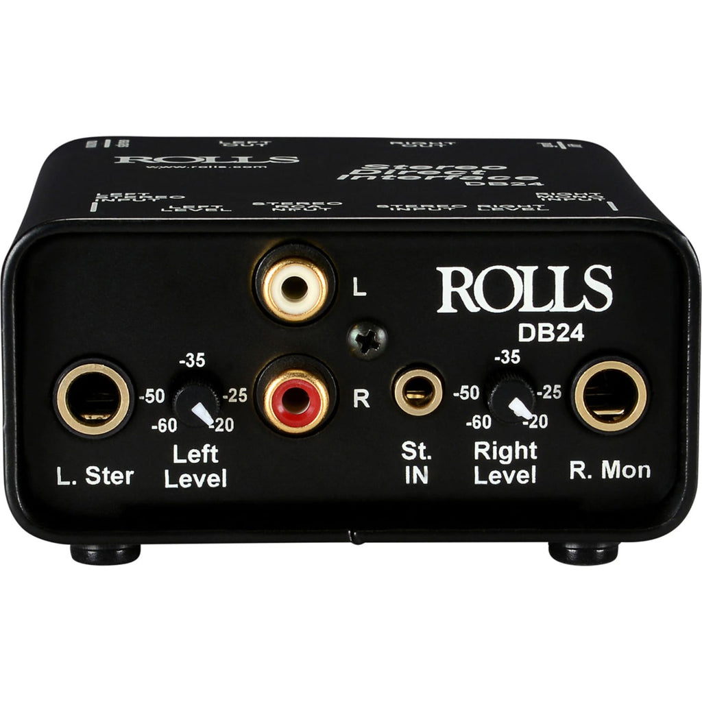 Introducing the new DB24 Stereo Direct Interface. This unit is a two channel isolation device designed to connect high impedance devices to low impedance. The unit is completely passive, and utilizes Rolls proprietary audio transformers for superior sound. A heavy duty steel chassis was chosen to provide maximum reliability when used in demanding live sound reinforcement applications. A variety of inputs are provided including stereo and mono 1/4", stereo RCA, and stereo 1/8" (3.5mm). The DB24 is an ideal impedance matching device for connecting any unbalanced stereo signal to a balanced system. Consumer audio equipment such as CD players, DVD players, MP3 players, etc., may be easily connected to a professional audio system.