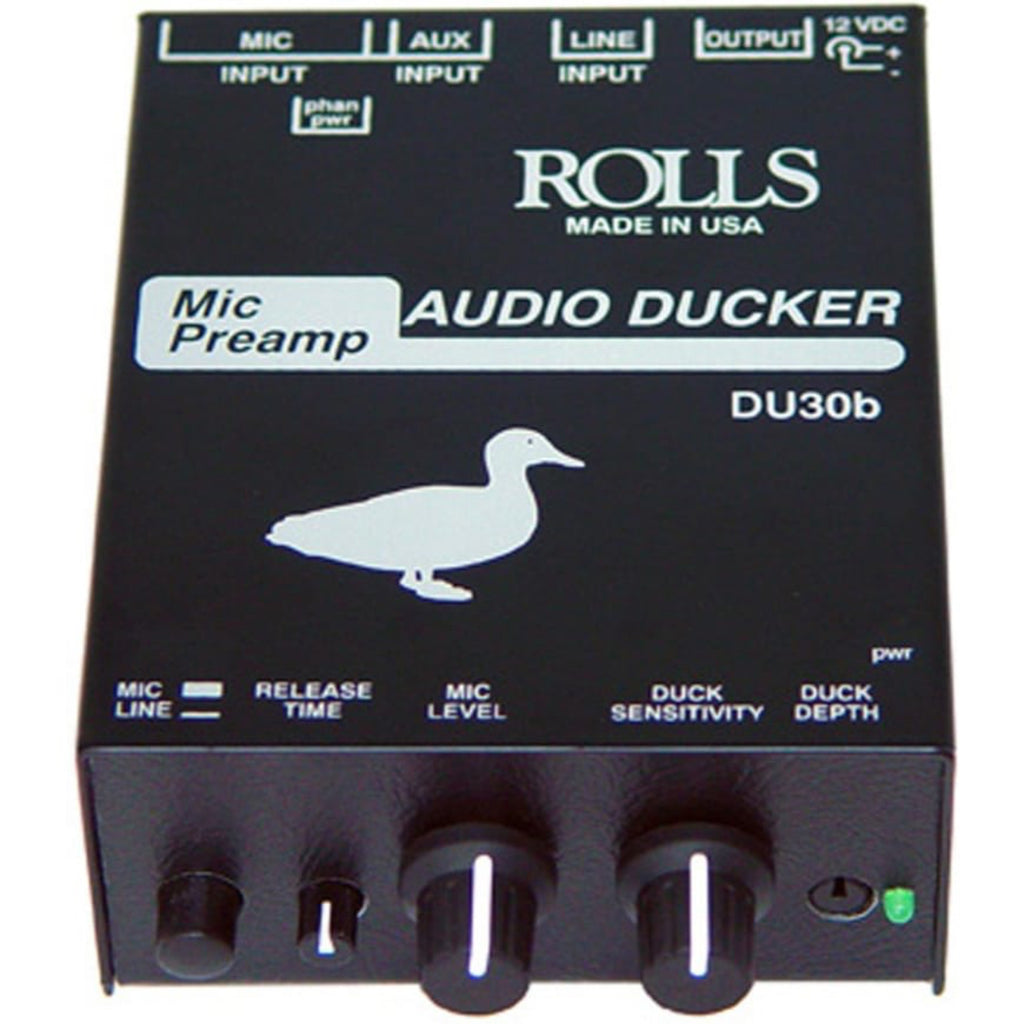 The DU30b is a microphone preamp and background music preamp. When an announcement is made into the microphone, the music is automatically "ducked" under the announcement. Then the music is brought back to it's previous level.