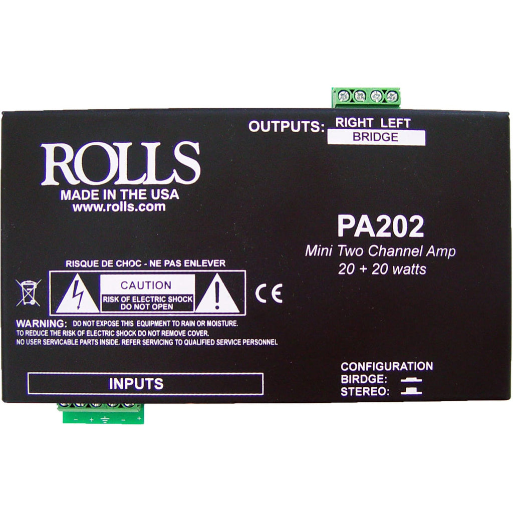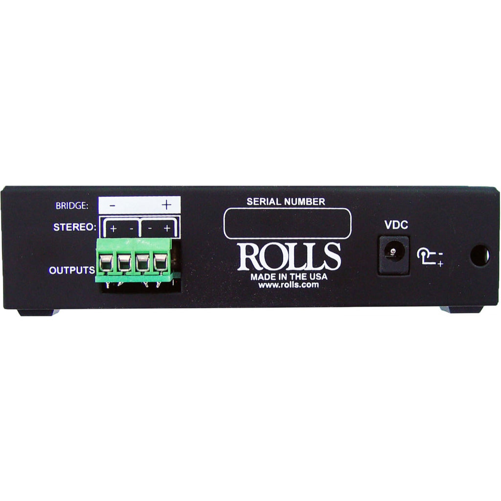 Small general purpose audio power amplifier for projector, ceiling mount, or rack monitoring. Great for boardroom and classroom applications. Ideal for small space installations where a larger amplifier won't fit. Works with 4 or 8 ohm loads. Has bridge switch for higher power mono and a limiter. Included 24 VDC inline IEC power supply.