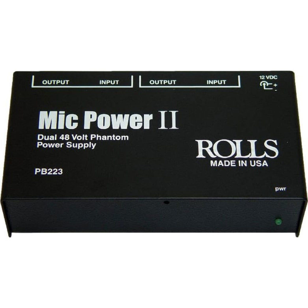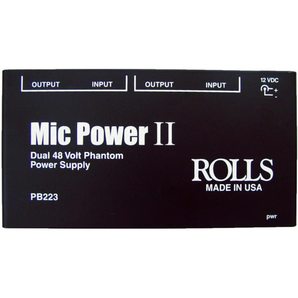 The PB223 is for powering phantom powered microphones with 48VDC. Since the unit uses a 100KHz switching power supply there is no audio noise generated. The PB223 has output pull down resistors so it will work with any mixer. The PB223 is identical to the PB23, except it powers two microphones rather than one.