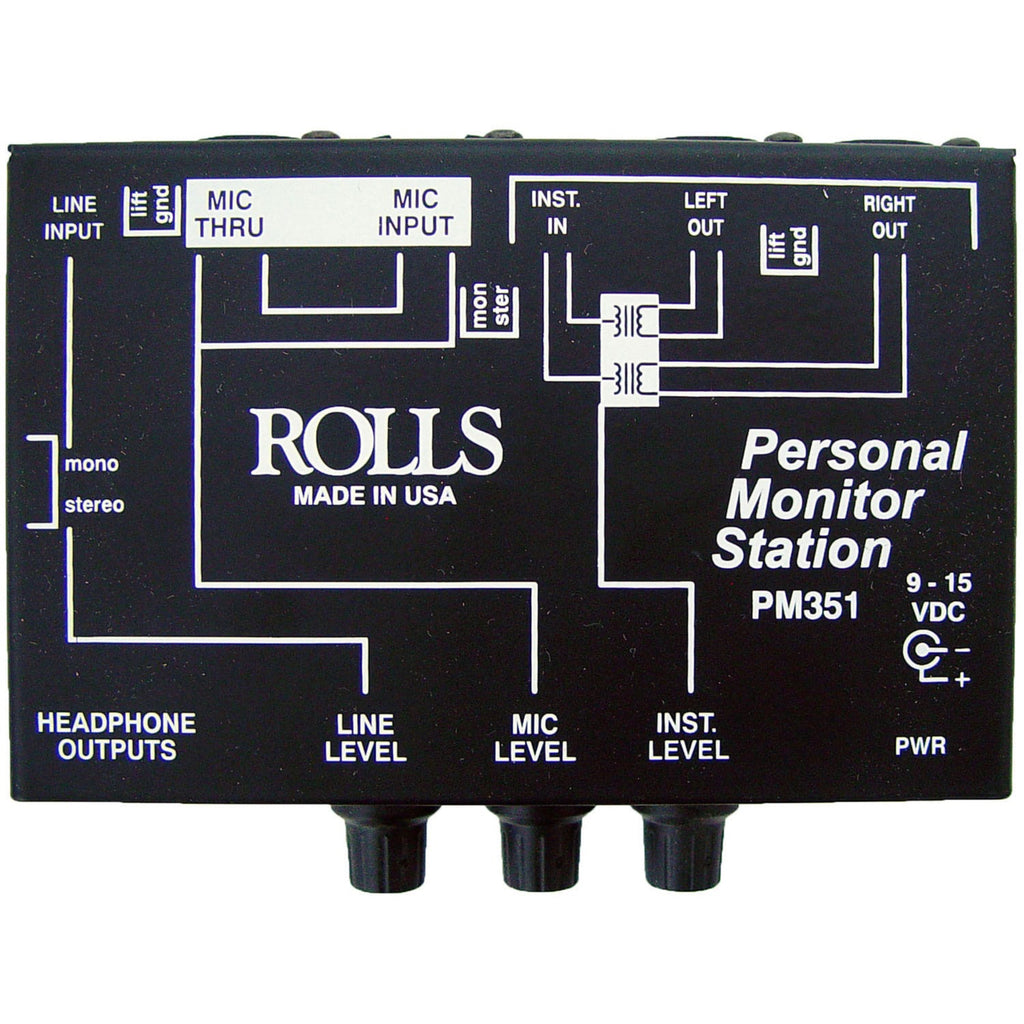 The PM351, like its predecessor the PM350b, is a personal monitoring device with a 1/4" TRS stereo/mono Line Input, a single XLR Microphone input and hard-wired XLR pass-through, and a 1/4" stereo/mono Instrument input with two transformer-balanced and isolated XLR Outputs. All three of these inputs are also routed via individual Level controls, to a 1/4" and an 1/8" (3.5mm) Phone Output. The Mic Through, and Instrument outputs have jumpered Ground Lifts for elimination of ground hum. The PM351 is ideal for live bands and church musicians, as well as studio musicians and singers. Having the ability to monitor a main mix along with the musician's voice and their instrument make the PM351 an effective and versatile tool.