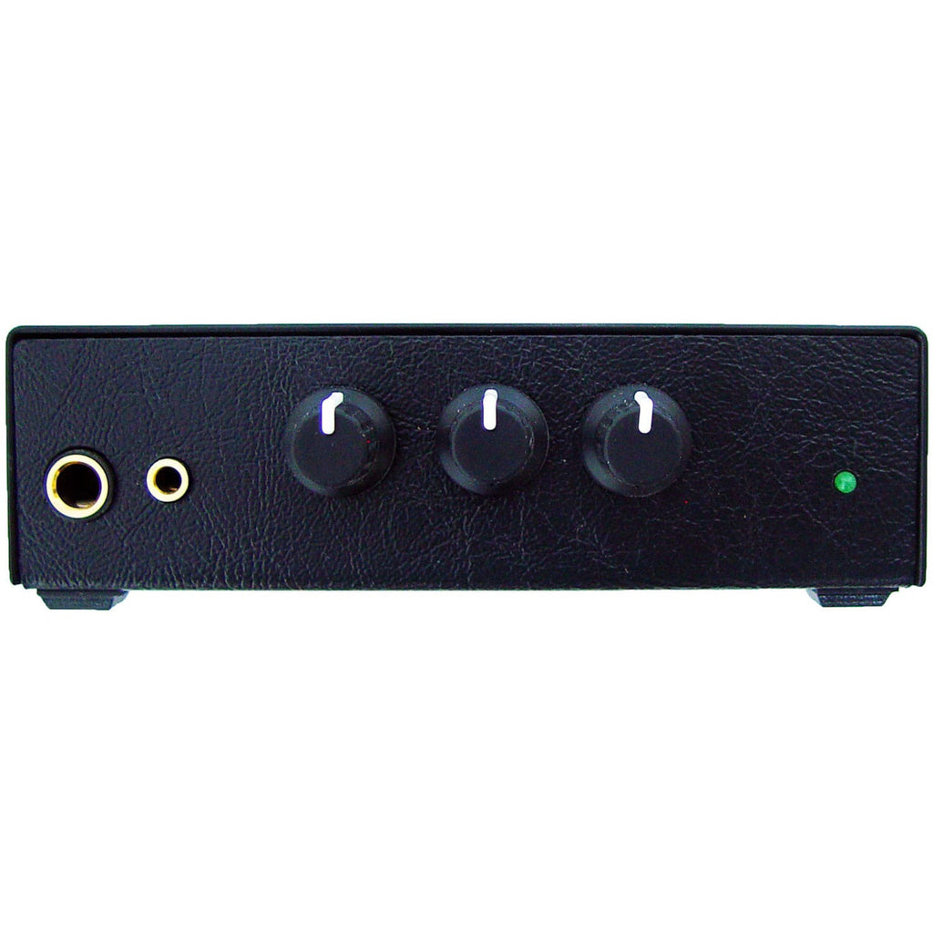Mixes Stereo or Mono Line Signal with a Microphone and Instrument Signal to Headphones
