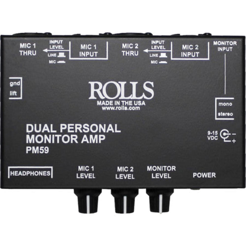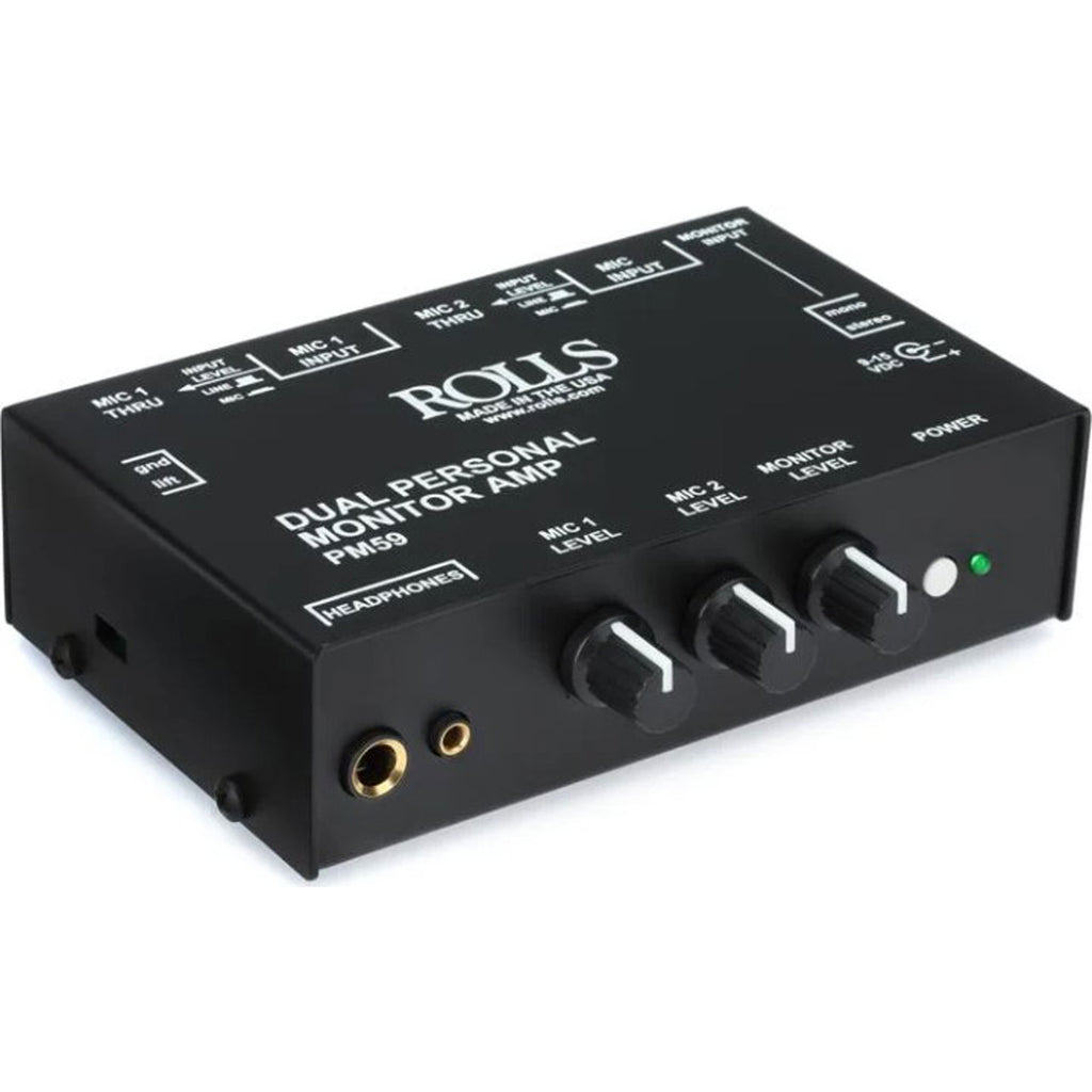 The PM59 mixes one or two microphones with a line-level Monitor signal to a set of headphones. The microphone inputs can be configured for standard mic level or line level XLR. The PM59 has a monitor level control, mic/XLR level control for each channel, mic/line pass through output XLR jacks for both channels, two headphone output jacks, and a stereo or mono TRS or TS 1/4" monitor input jack. The PM59 is designed for recording, podcast, keyboard players, drummers who need to hear a click track, choir singers who need to hear themselves, and many other applications. Power adapter is included with the PM59.