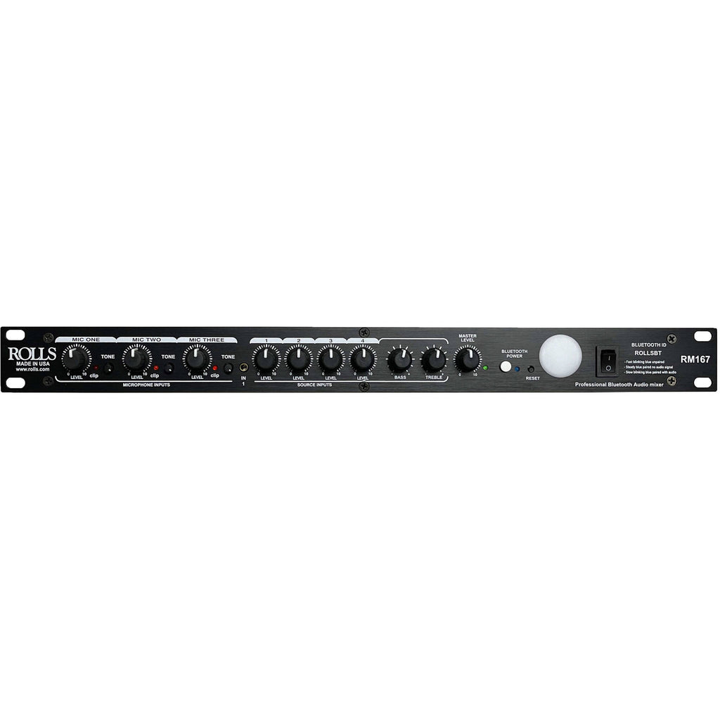Introducing the RM167 - the ultimate single rack space mixer meticulously crafted for the install/contractor market, now equipped with Bluetooth connectivity. This versatile unit brings together three balanced microphones and four stereo sources, seamlessly blending them into mono or stereo balanced outputs.