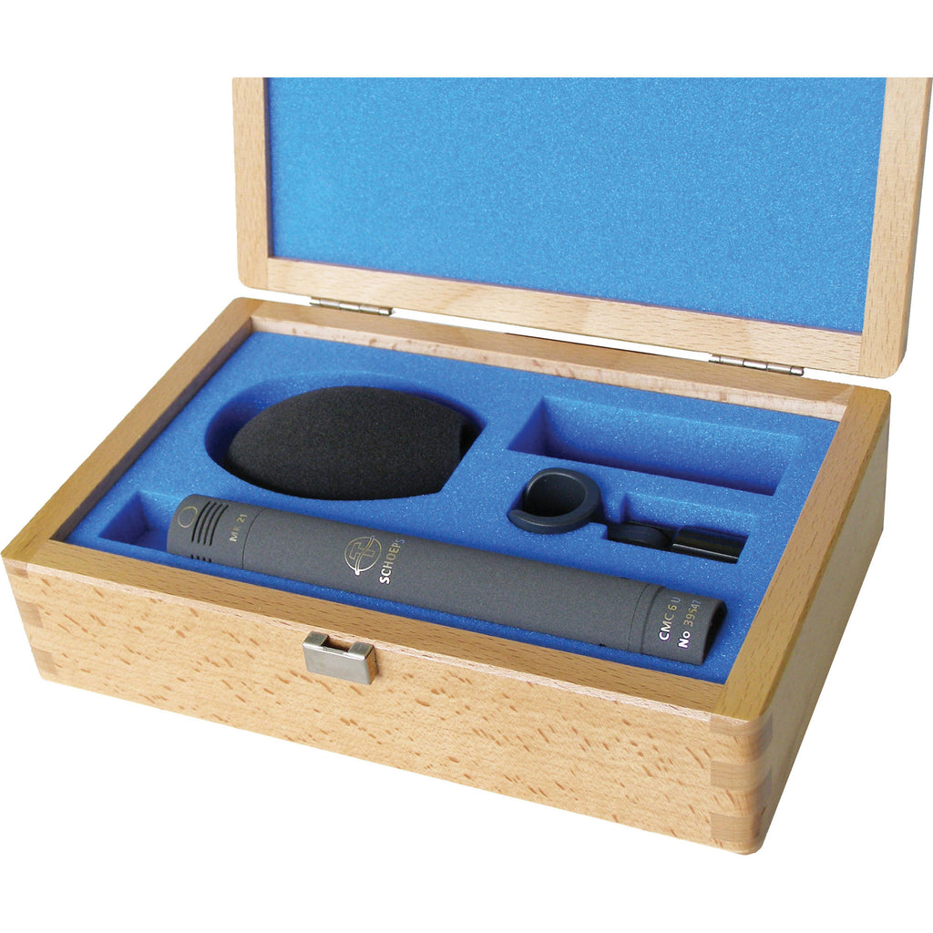 Wide Cardioid Microphone Kit with CMC 6U Amplifier, MK 21 Wide Cardioid Capsule, SG20 Stand Clamp and B5 Popscreen in a Custom Wood Box.