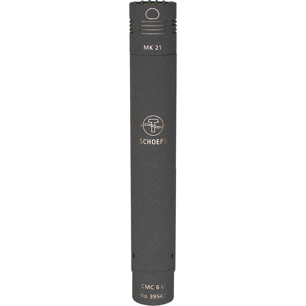 The Schoeps MK21 is part of the Colette series of modular capsules designed for use with the CMC preamplifiers. Designed for close proximity capturing, the MK21 provides a wide cardioid polar pattern that provides a uniform response around the front hemisphere of the capsule. The wide cardioid pattern provides a more generous pick at the off-axis sections, although not quite as wide as an omnidirectional. The uniform frequency response results in an overall "warm" tonal quality, enhancing vocal performances and instrument capturing at close proximities.