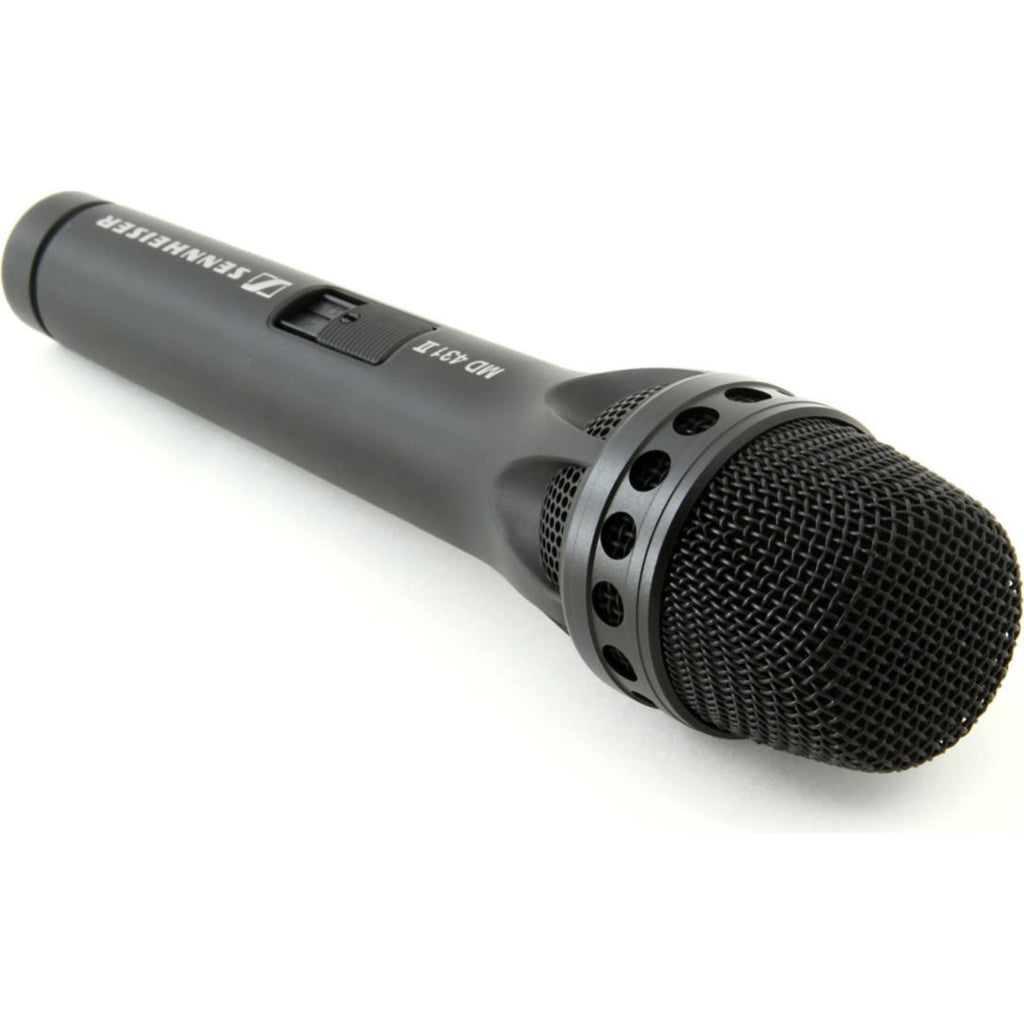 Sennheiser's best dynamic mic for live vocals just got better. The super-cardioid MD 431 II has a custom-tailored frequency response to achieve added transparency. A nearly frequency-independent polar pattern offers incredibly high gain before feedback and provides uncolored off-axis response. Its new rugged housing has a steel-mesh grille, a shock-suspended capsule, and a hum-bucking coil. It features a noiseless, magnetic reed on/off switch which is recessed in its handle, and internal electronics for refining proximity effect.