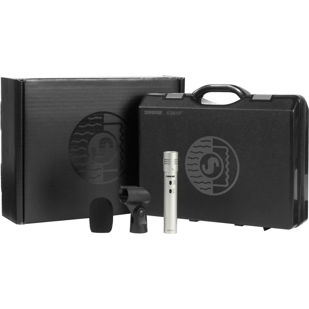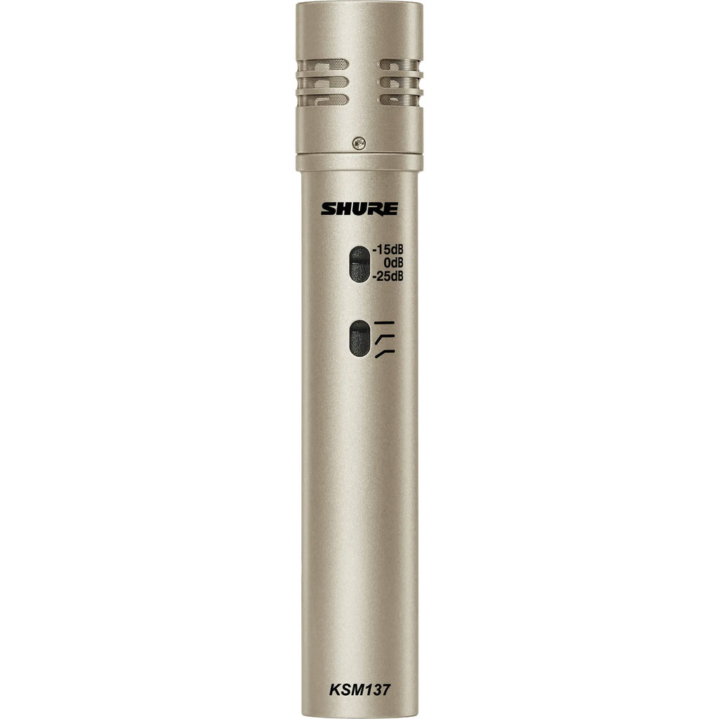 The KSM137 is an end-address condenser microphone with a single cardioid polar pattern. Designed for studio use, yet rugged enough for live applications, the KSM137 can withstand extremely high sound pressure levels (SPL). Its low self-noise and extended frequency response make it ideal for recording instruments.