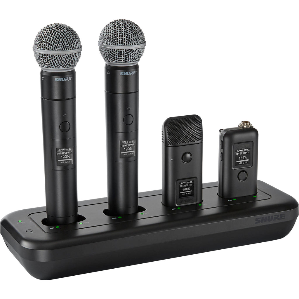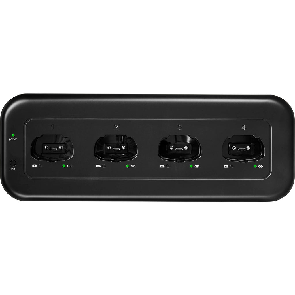 Networked Charging Station for 4 Wireless Microphones, Compatible with Shure MXW1X, MXW2X, and MXW6X Microphones