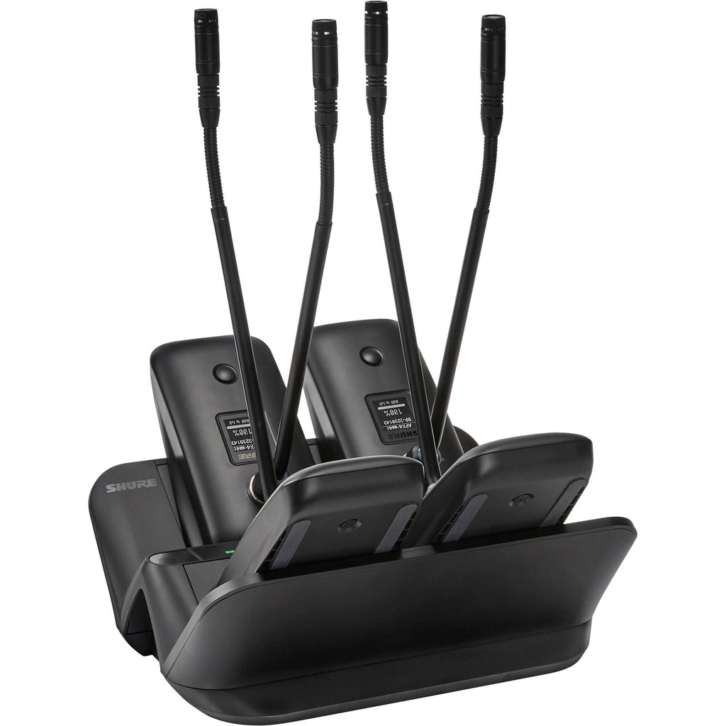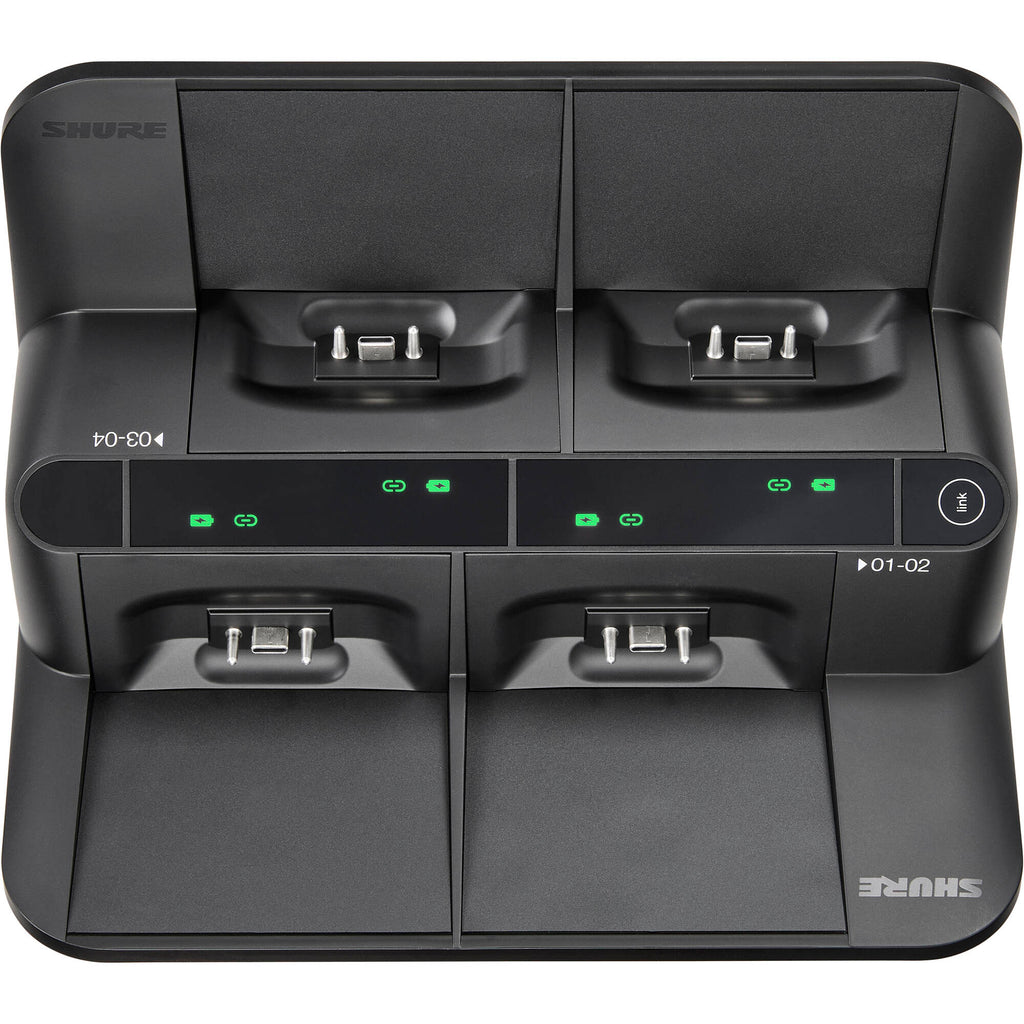 Networked Charging Station for 4 Wireless Microphones, Compatible with Shure MXW6X and MXW8X Microphones