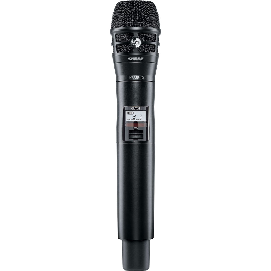 With an interchangeable KSM8 microphone cartridge, the QLXD2/K8B Handheld Wireless Microphone Transmitter is ideal for wireless vocals in presentation spaces, music venues, and houses of worship.
