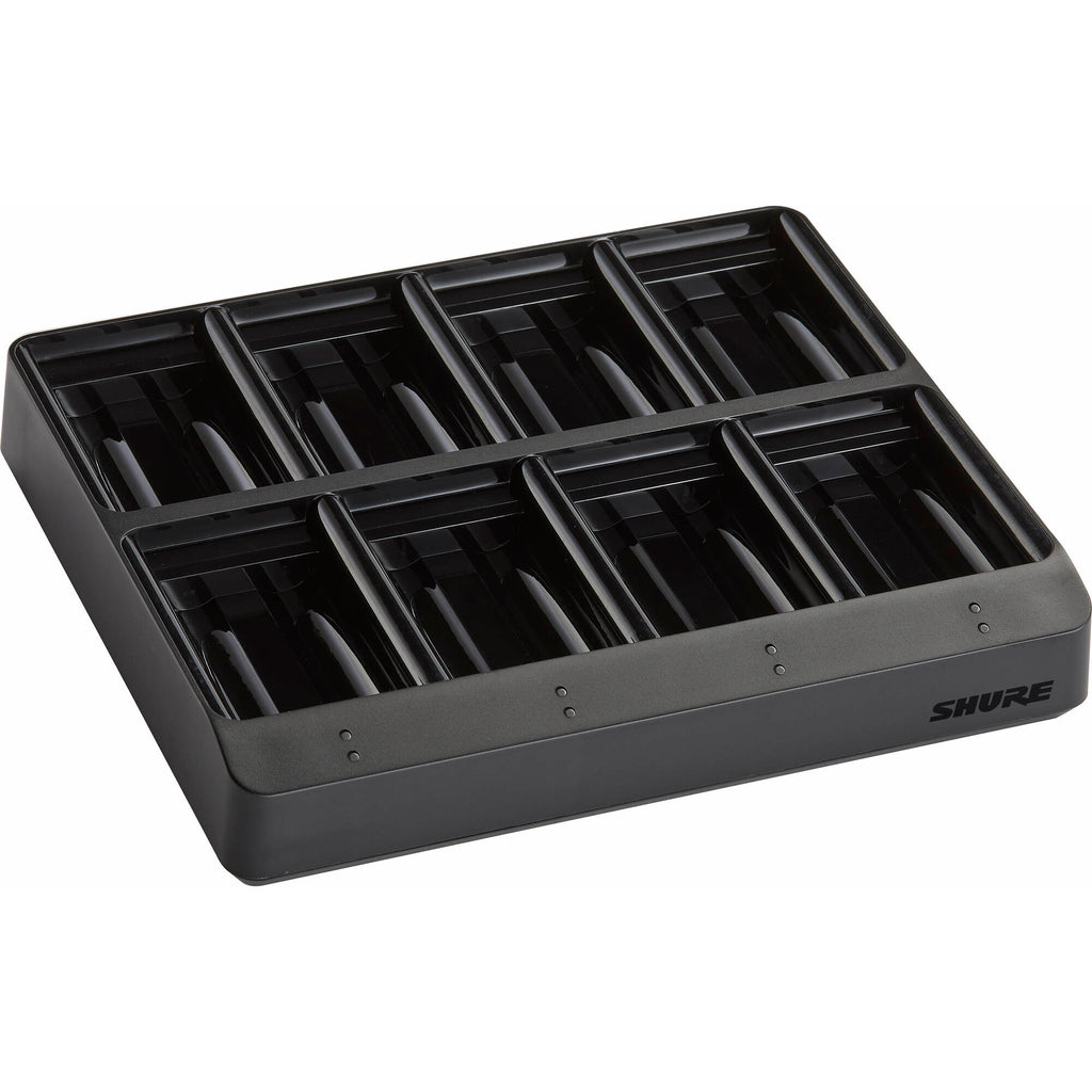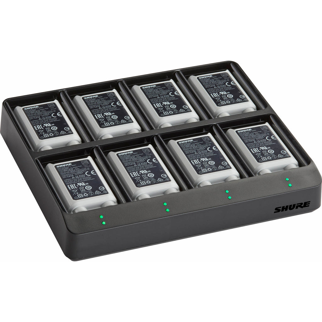 The SBC80-903 is an 8-bay charging station for up to eight (8) SB903 rechargeable lithium ion batteries. The charging cradle is designed to fit in a rackmount drawer and provides a full charge for installed batteries in 3 hours. LED indicators illuminate to indicate battery health and charging status.