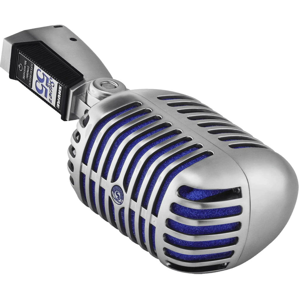 The Super 55 Deluxe Vocal Microphone features a signature satin chrome-plated die-cast casing, Supercardioid polar pattern, vibrant blue foam, and tailored frequency response for natural vocals and speech. Integrated, swivel stand mount is included.