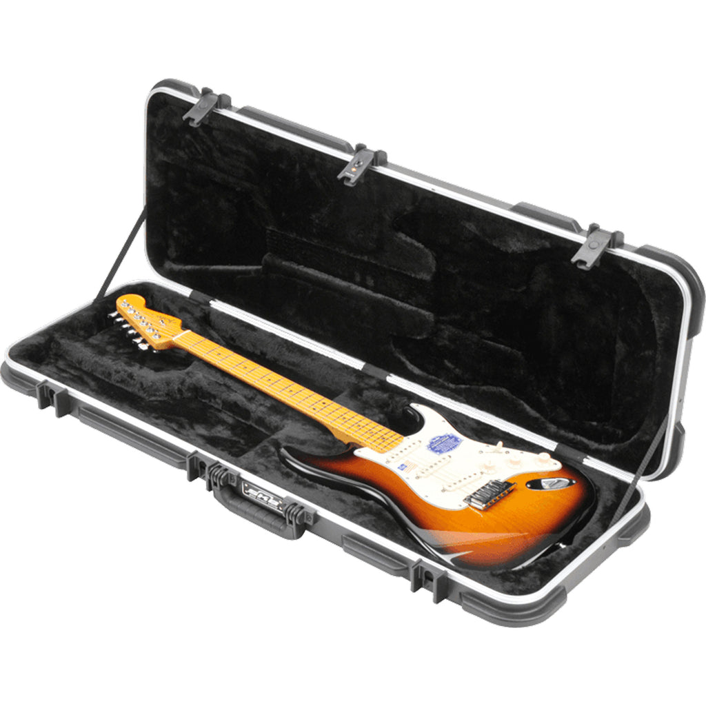 A thirty-year standard in universal fit electric cases! The SKB-66 is designed for traditional body styles, both left and right handed Strat and Tele type guitars. Featuring a fitted interior with full neck support and Deluxe Plush protection on all sides, re-designed exterior bumper-protected corners, contoured stacking points for added convenience, and a rubber over-molded handle for comfortable carrying.