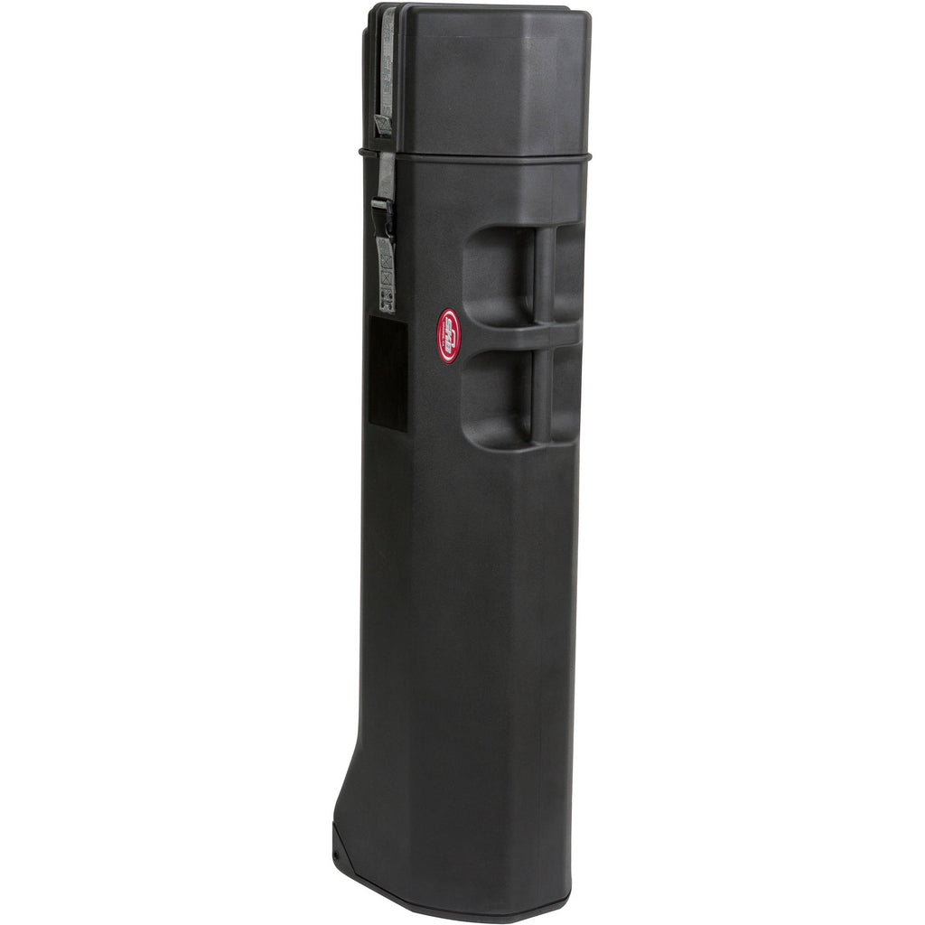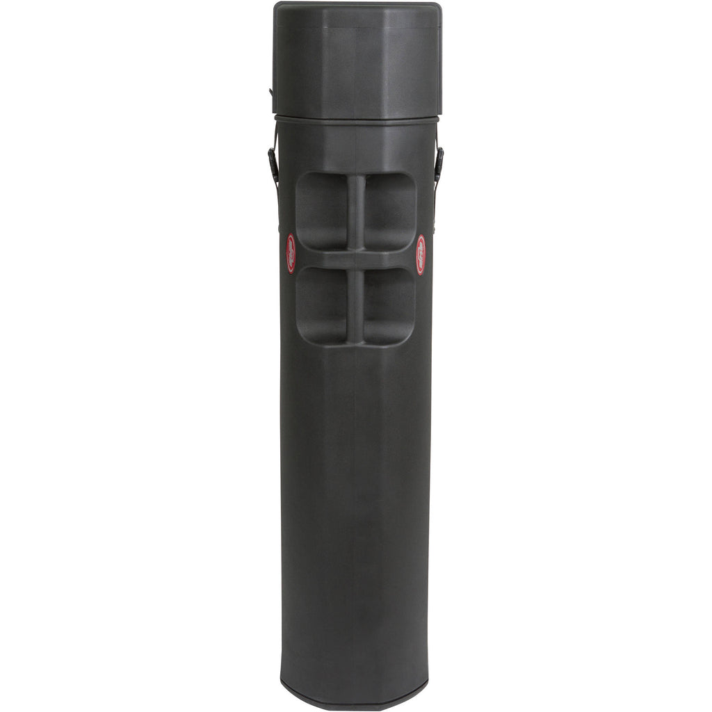 Roto molded of rugged Linear Low Density Polyethylene, this case is designed with internal foam in the base and lid to keep equipment secure and protected. The case has internal dimension of 50" tall with a diameter of 11", and features a sturdy, high-tension slide release buckle with heavy-duty web straps for easy closure, room on both sides to adhere shipping labels, two molded-in ergonomic carrying handles, and in-line skate style wheels for easy transportation. This case comes with SKB's Unconditional Lifetime Warranty.