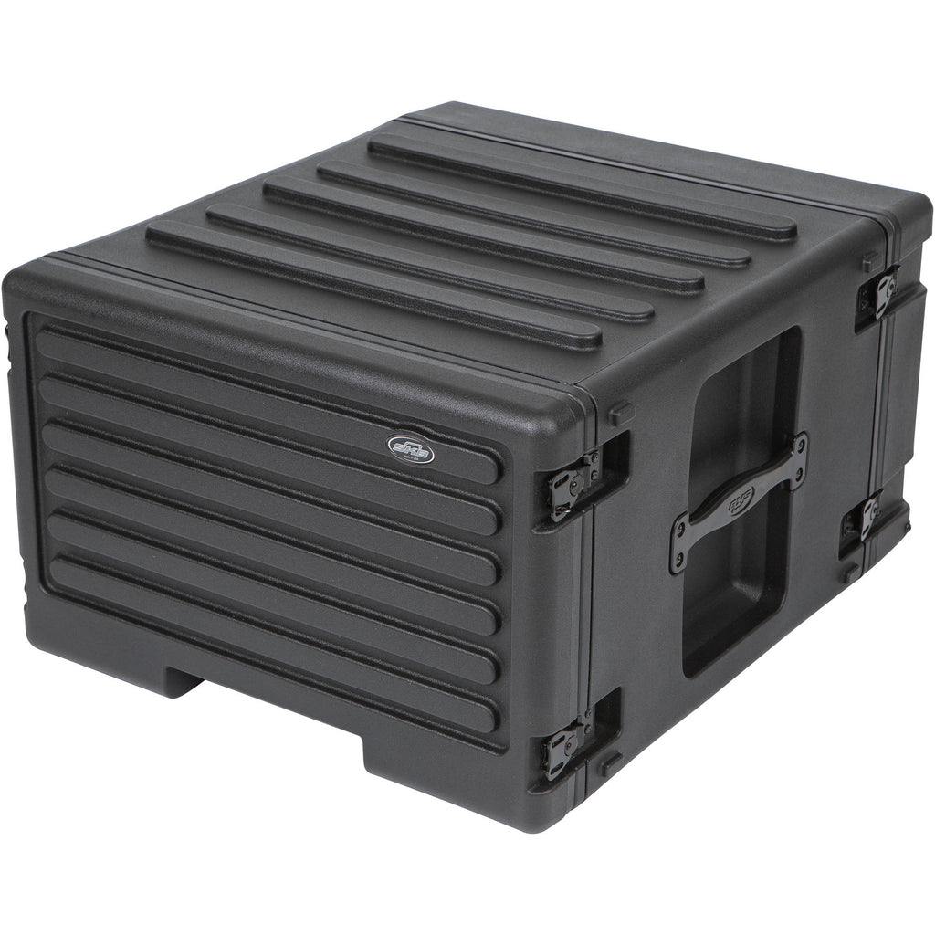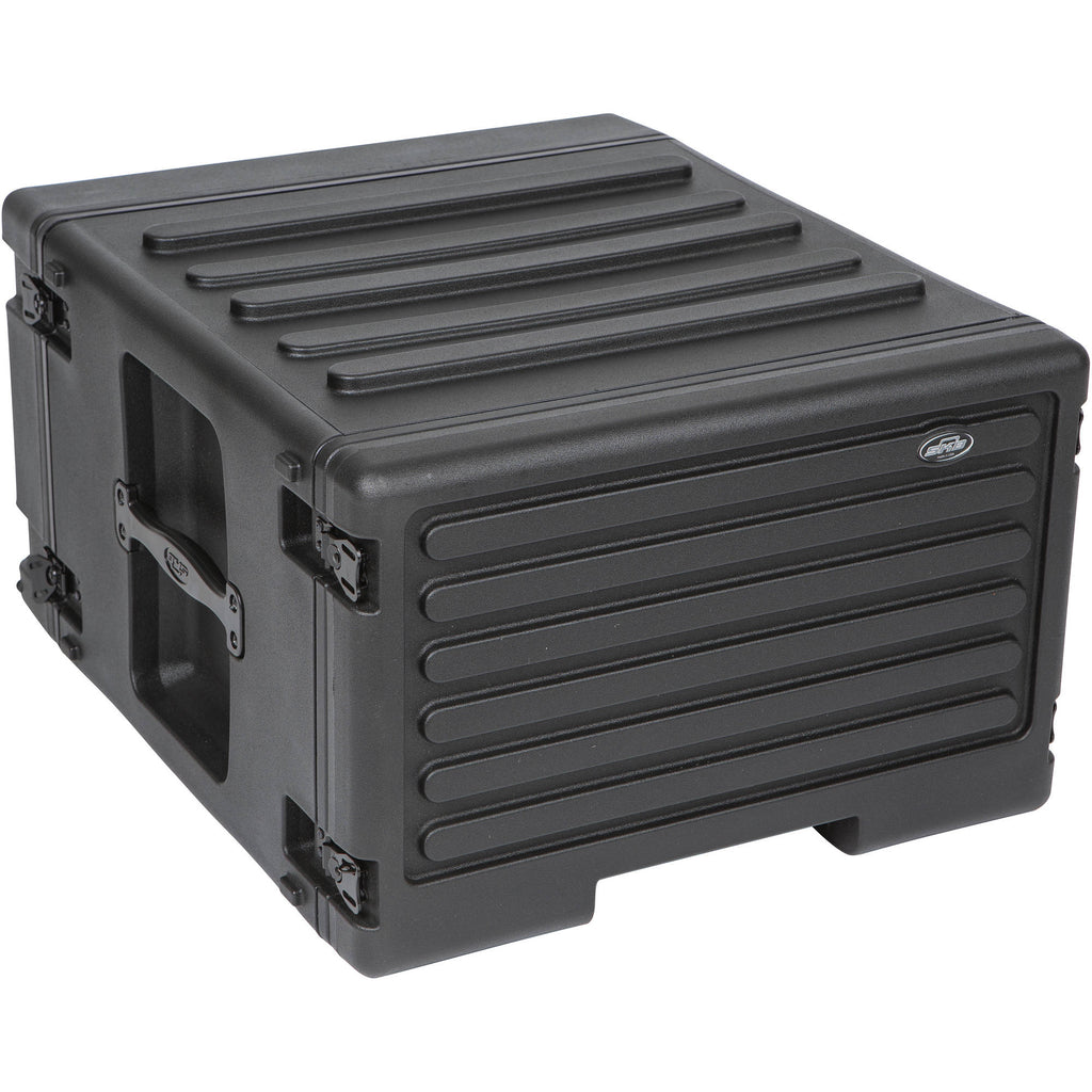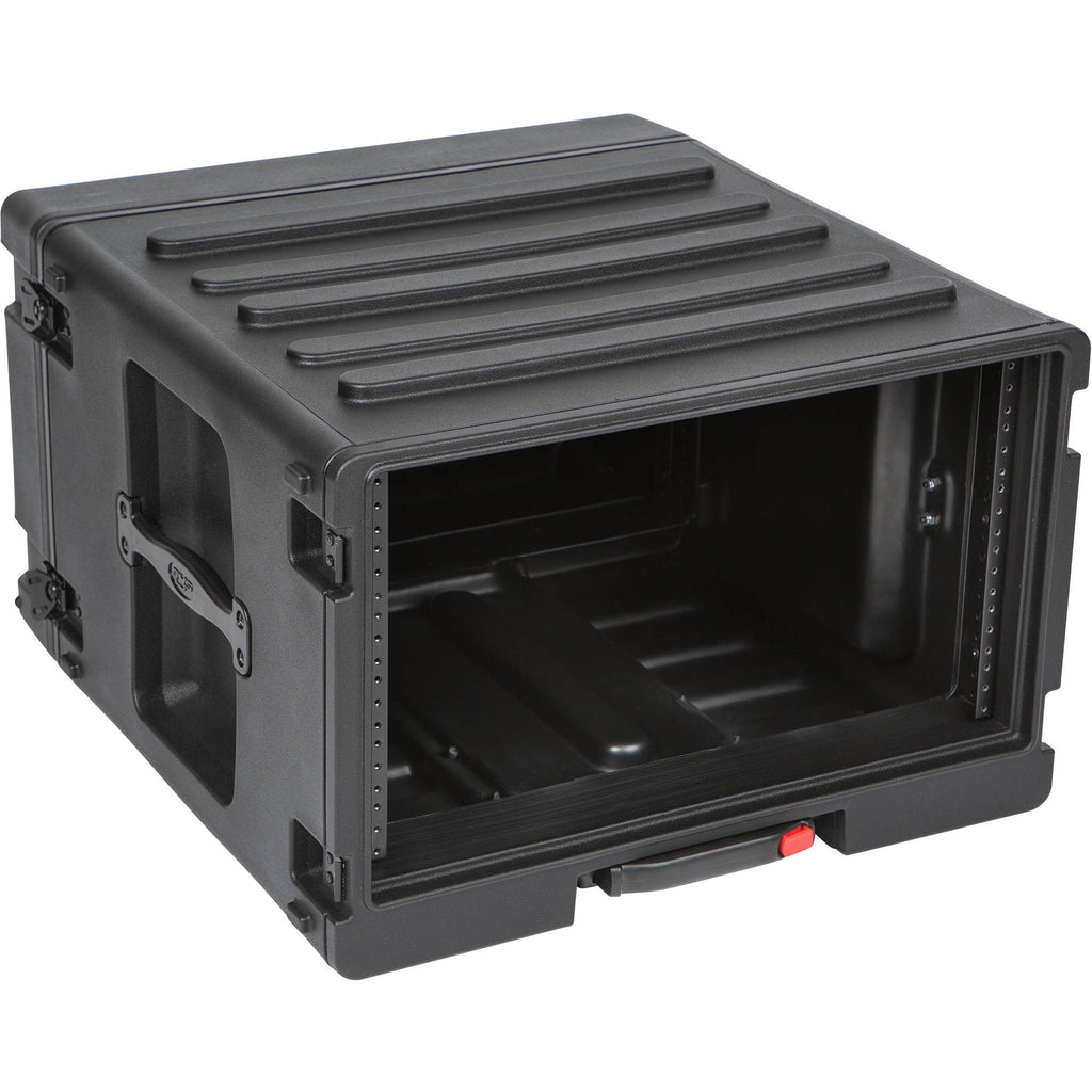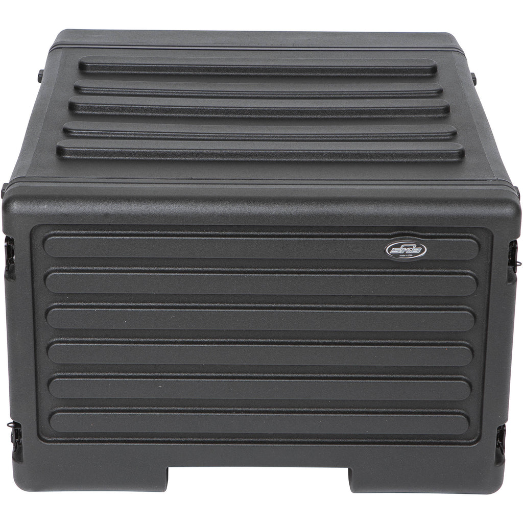 The SKB 6U Roto Rolling Rack Case is designed to house rack-mountable equipment for musicians and audio engineers in studios, live stage applications, and mobile-recording setups. It features threaded steel rails in the front and back and a waterproof gasket to keep your gear dry. The rear access door allows easy configuration of your equipment's rear-panel connectors and switches. Military-grade butterfly latches provide dependable and secure closure.