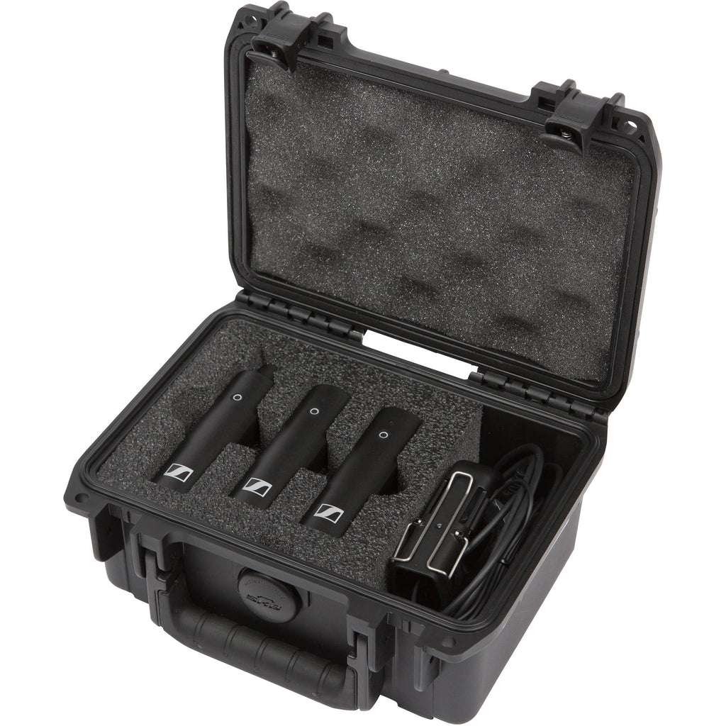 The iSeries 3i0705-3-XSW case is designed to accommodate the Sennheiser XSW-D ENG Set Wireless Audio System. The interior features a custom-cut high quality PE foam that will hold the Sennheiser Mini Jack TX, XLR Female TX, and Mini Jack RX, and also includes an accessory pocket that will house the lav mic and other accessories.
