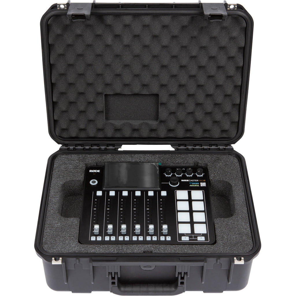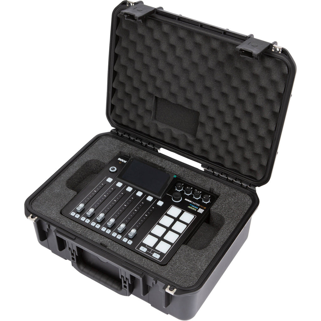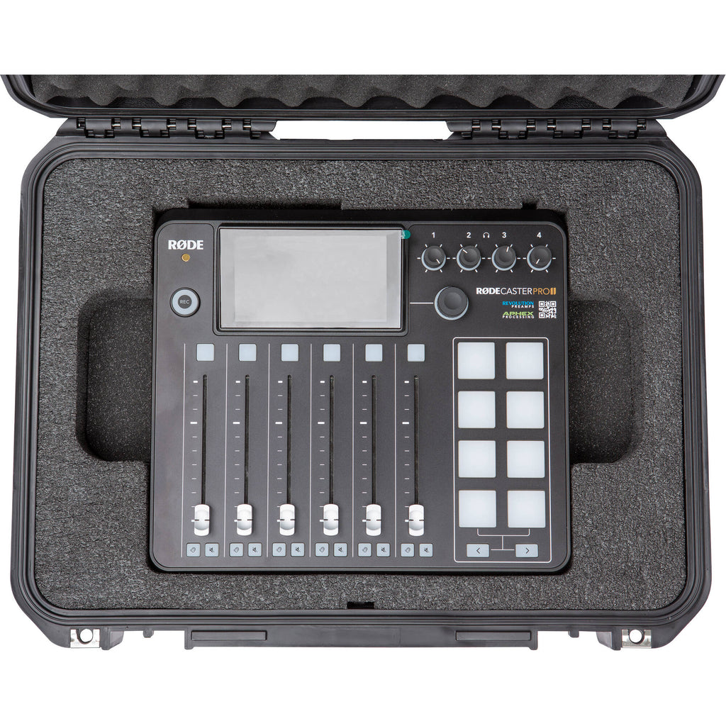 Featuring high quality form-cut PE foam designed specifically to house the RODECaster Pro II Production Console, the 3i1813-7-RP2 case interior also includes a main removable pocket for two Rode PodMics as well as two additional accessory pockets. If the PodMic cutout is not needed, the custom foam can be removed to provide an open cavity for additional storage. The main compartment measures 16.25" x 5" x 4" without the custom foam PodMic insert. The smaller compartments measure 9.25" x 2" x 4.25" and 9.125" x 2" x 2.75".