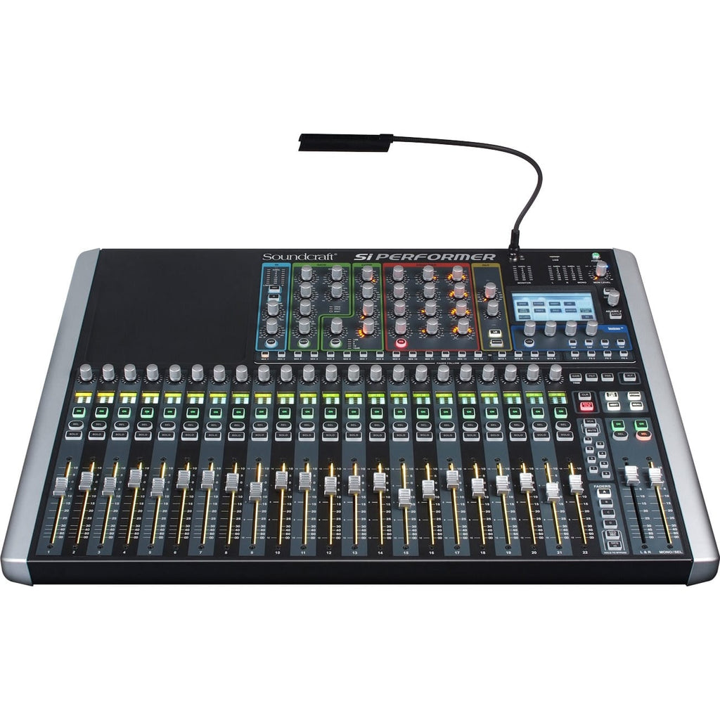 Drawing on the combined heritage of Soundcraft's acclaimed Si Compact and Vi Series digital live sound mixers, the Si Performer takes mixing out of the dark with powerful digital audio mixing facilities married to a DMX 512 controller allowing for the first time the mixing console to also run the lighting rig! 'Music & Lights; these have been partners in the entertainment and production industry since amplified sound met the electric light but until now even the simplest lighting setup would require a separate lighting controller console, road case and somewhere to put it; Soundcraft Si Performer changes everything. Empowering the console with a DMX interface, the Soundcraft Si Performer is able to utilize the power of motorised faders, Soundcraft FaderGlow and a console automation system to provide a flexible automated lighting controller ideal for schools, churches, touring theatre companies and conference productions.