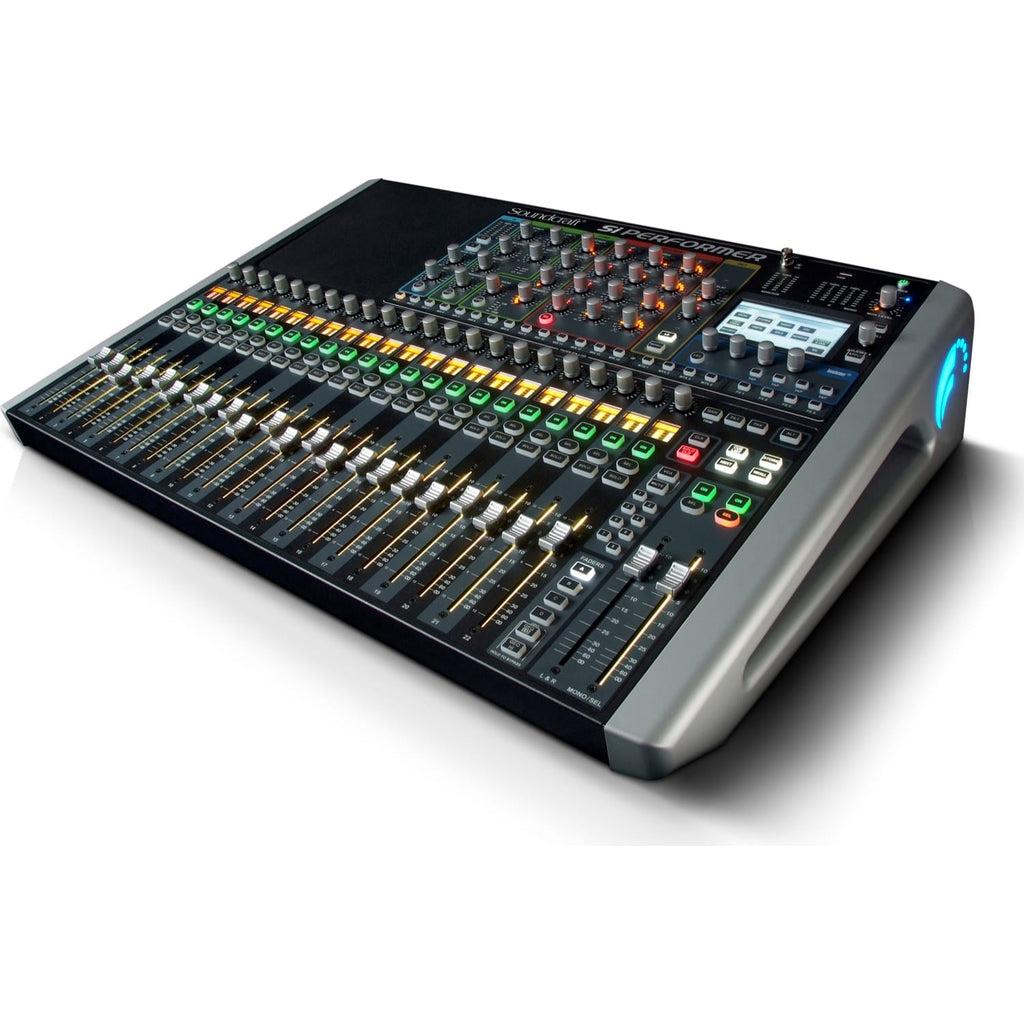 The Si Performer 2 features 24 recallable mic pre amps (32 on Si Performer 3) plus 8 stereo returns, AES in one 64x64 expansion slot and another 64x32 expansion slot offering enough expansion to use every one of the 64 mono inputs for a possible total of 80 inputs to mix. Each input channel has dedicated processing for high pass filter, input delay, gate, compressor and parametric EQ. Keeping you in control are 8 VCA busses, 8 mute groups, FaderGlow and colour backlit name displays on every channel so you are never lost.