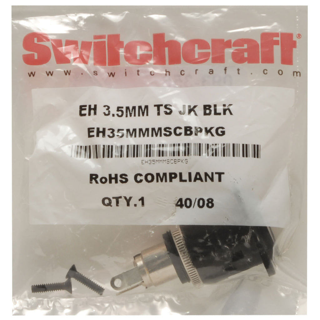 The EH35MMMSCB is a 3.5 mm mono jack to solder contacts EH Series panel mount connector and features a zinc die-cast housing with black chrome finish.