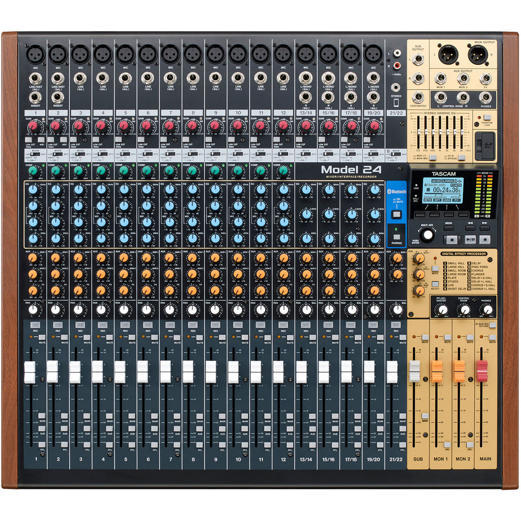 TASCAM has been continuously providing industry-leading recording solutions for decades, such as the TASCAM 38 Open Reel 8-track, the DA-88 Digital 8-track and the legendary Portastudio Cassette and Digital Multitrack recorders. TASCAM now builds on this legacy to deliver a new classic: the Model 24 Multitrack Recorder/Mixer/Interface.Whether used for rehearsal, live shows or studio production, this triple-function recording console perfectly meets the needs of today's working and recording musician