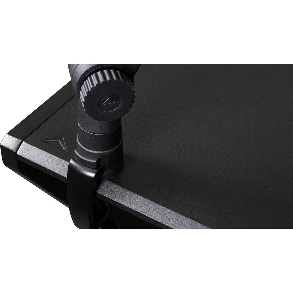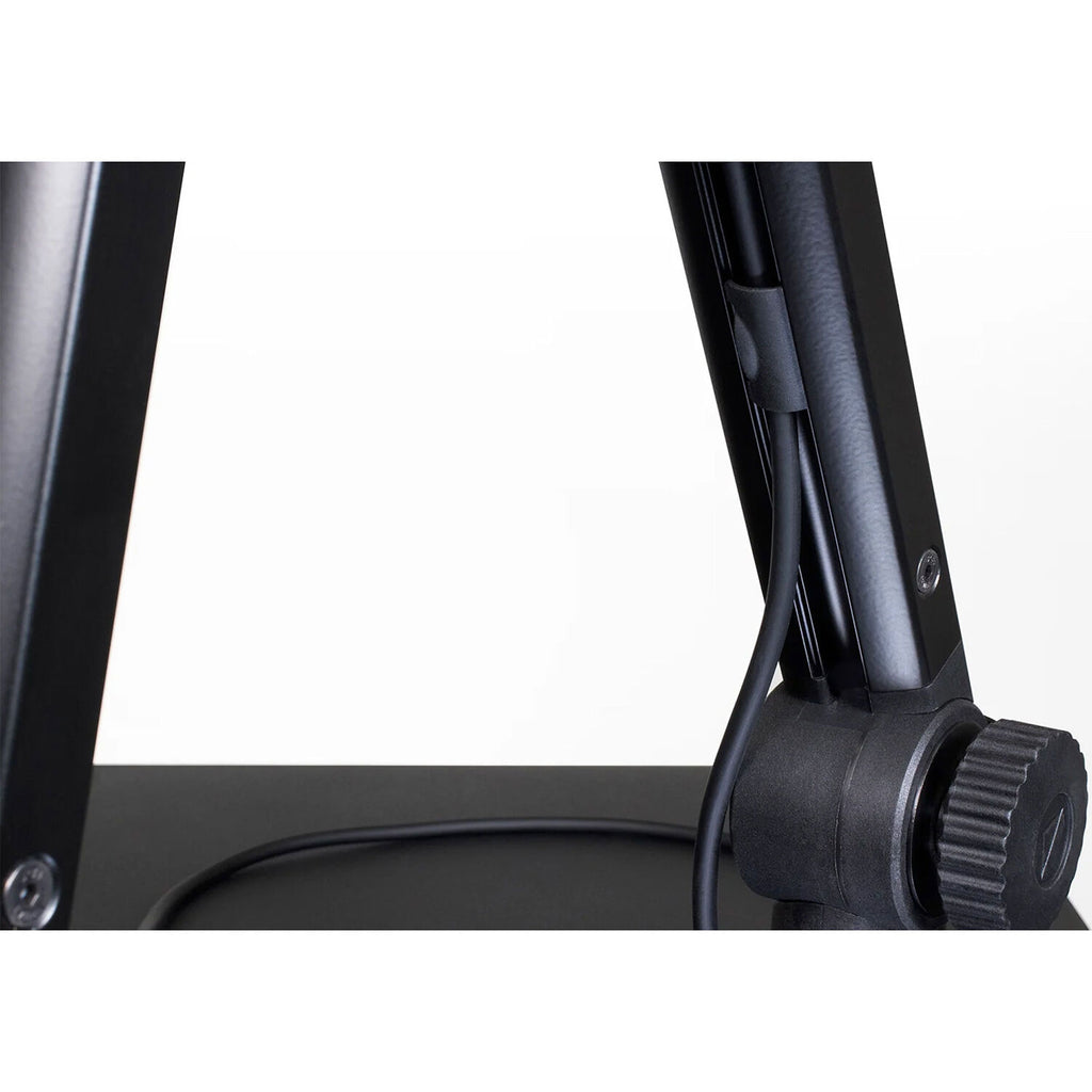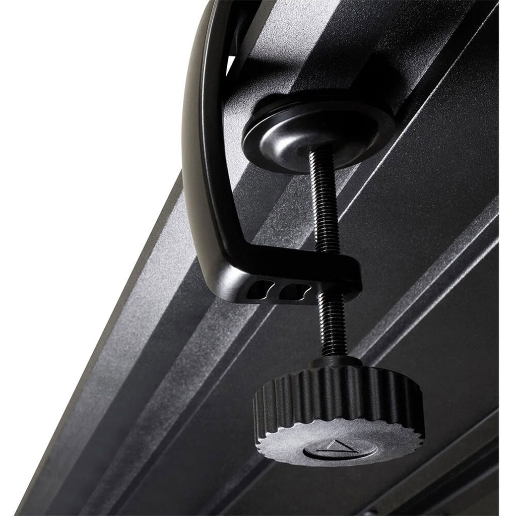 The BCM-300 deluxe broadcast mic stand brings fluid functionality and quality of life features together in a single sleek design. It offers a max height of 37" when fully extended. Locking arms allow the BCM-300 to easily secure your mic the way that fits your space the most. The extended drop features a 3.75" length. This gives side connecting mics like the SM7B more rotation options and adds utility for other models. The clamp based mounting system offers a dependable and flexible means of attaching to multiple desks, tables and other flat surfaces.