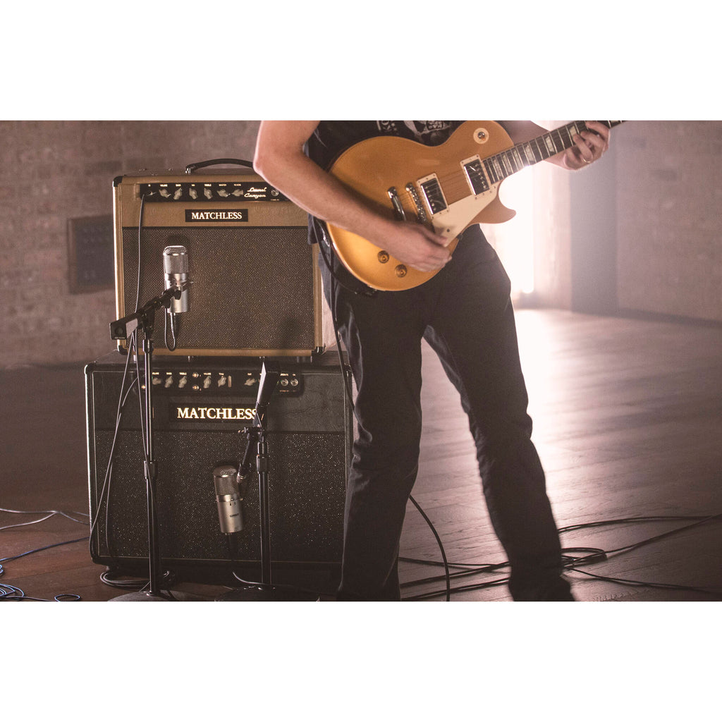 The original is also a favorite inside studios for tracking guitar and bass cabinets - especially for percussive, loud guitar parts like you might find on an AC/DC record. The openness of the condenser capsule and the ability for the circuit to handle higher-than-normal SPLs means that you can track guitars LOUD without compromising detail. For those about to rock - you'll notice a difference.
