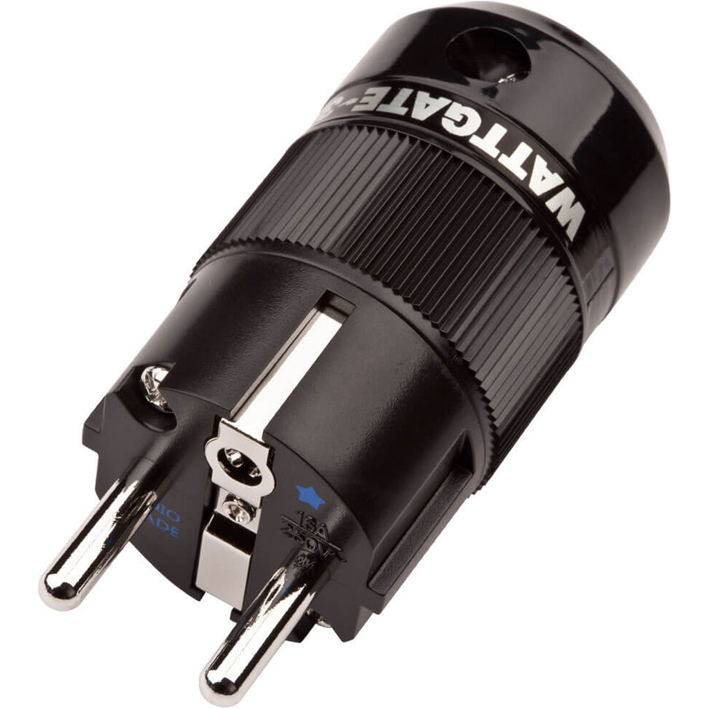 Audio Grade Schuko plug. Large screw down terminals. Accepts 10 to 16 awg wire. Accepts 16mm cable diameter. Glass filled high temperature nylon front housing. Polycarbonate rear housing. Stainless hardware. Wattgate Four Layer Plating Process* 16A/250VAC