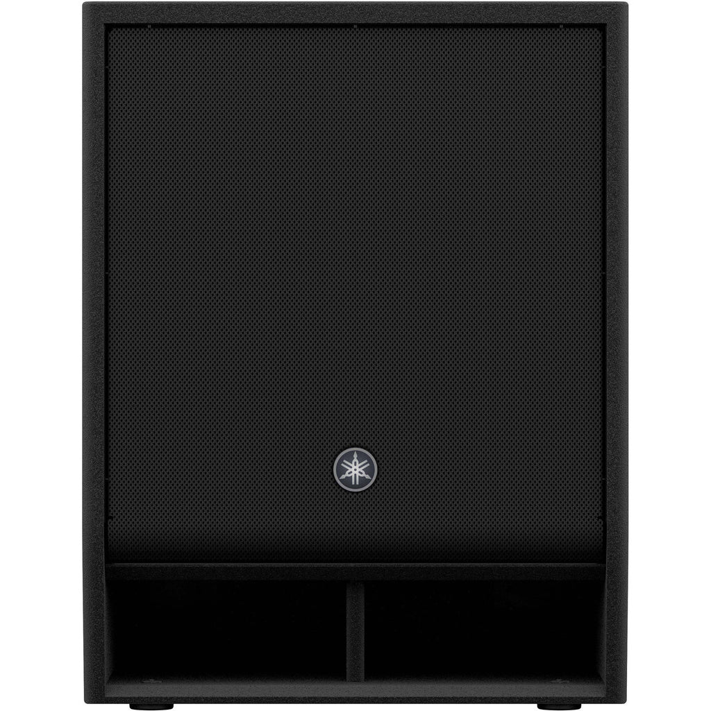 The black Yamaha DXS15XLF-D is a Dante-equipped, powered subwoofer designed for extending the low frequency of full-range speakers and is well suited for use with any of the DZR-series powered loudspeakers. The 1600W Class-D amplifier powers the 15" woofer to provide a frequency range of 33 to 150 Hz (-10 dB) with a maximum SPL of 136 dB.