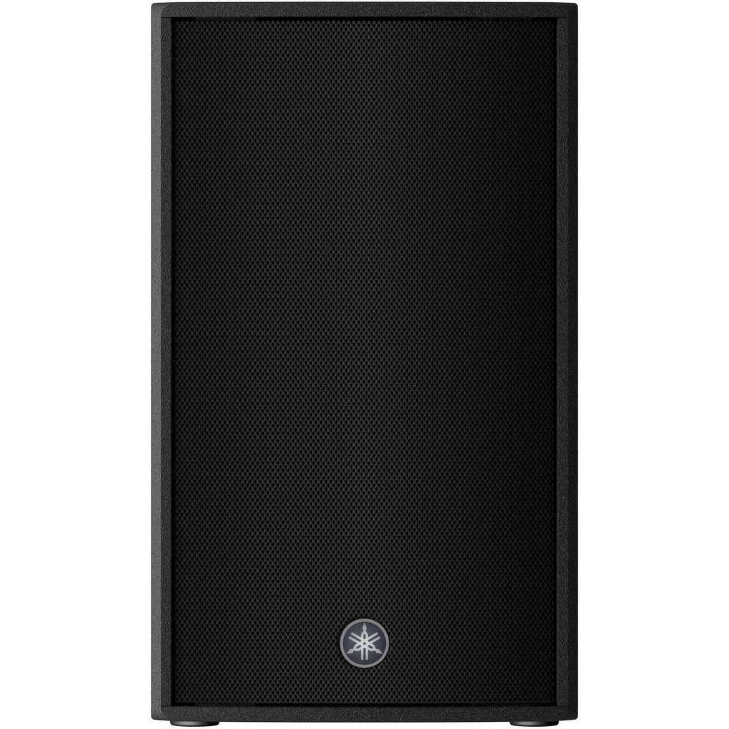 The black Yamaha DZR10-D is a Dante-equipped, 2-way powered loudspeaker designed for main/FOH and floor monitor applications. The 2000W Class-D b-iamp powers the 10" woofer and 2" compression driver, which combine to provide a frequency range of 44 Hz to 20 kHz (-10 dB) with a maximum SPL of 137 dB. The rotatable horn allows for vertical or horizontal mounting to further adapt it to the acoustic dimensions of a venue. The constant directivity horn was designed with the goal of providing smooth, level coverage across the intended coverage area, minimizing roll-off that is common in conventional horn designs.