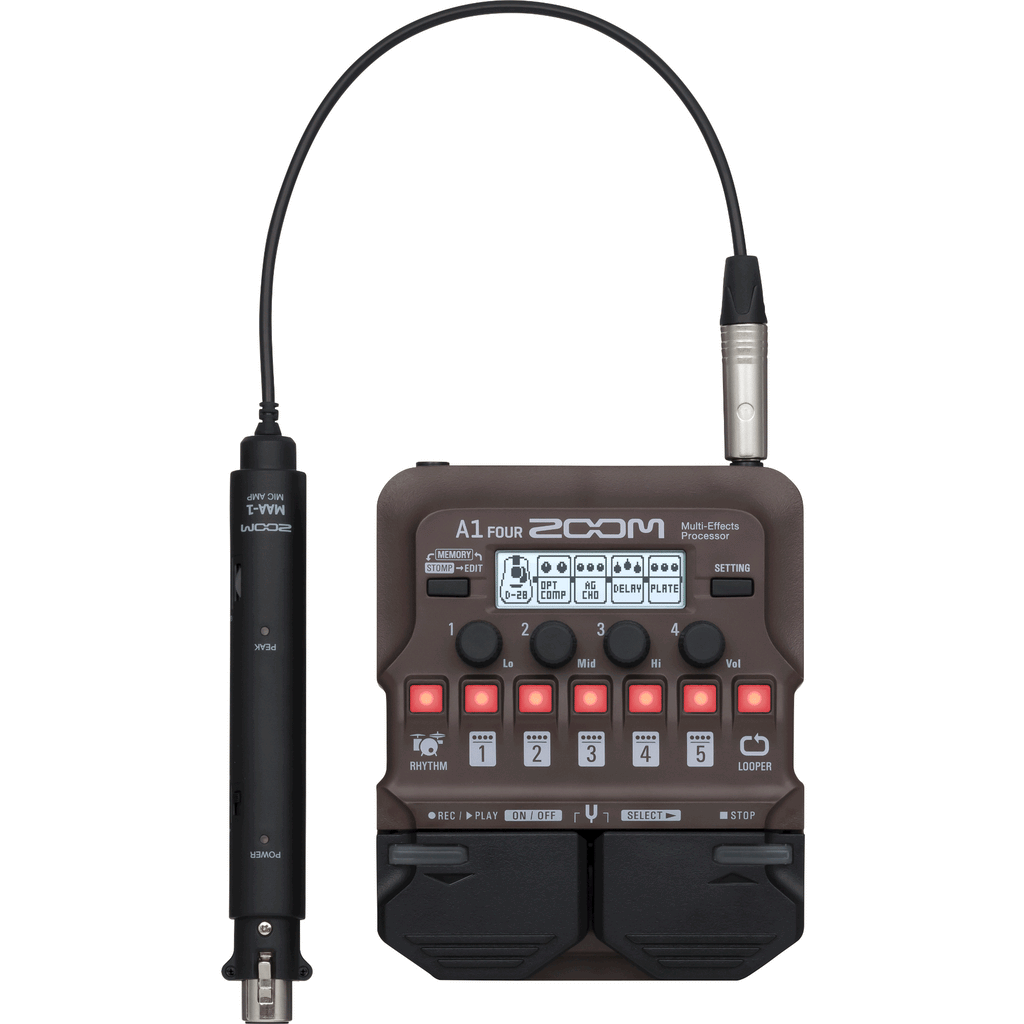 The Zoom MAA-1 mic adapter provides a hassle-free connection to the A1/A1X FOUR. It works with dynamic microphones and even provides phantom power for condenser mics. Add effects to any acoustic instrument and adjust gain settings with the MAA-1's easy-access controls.