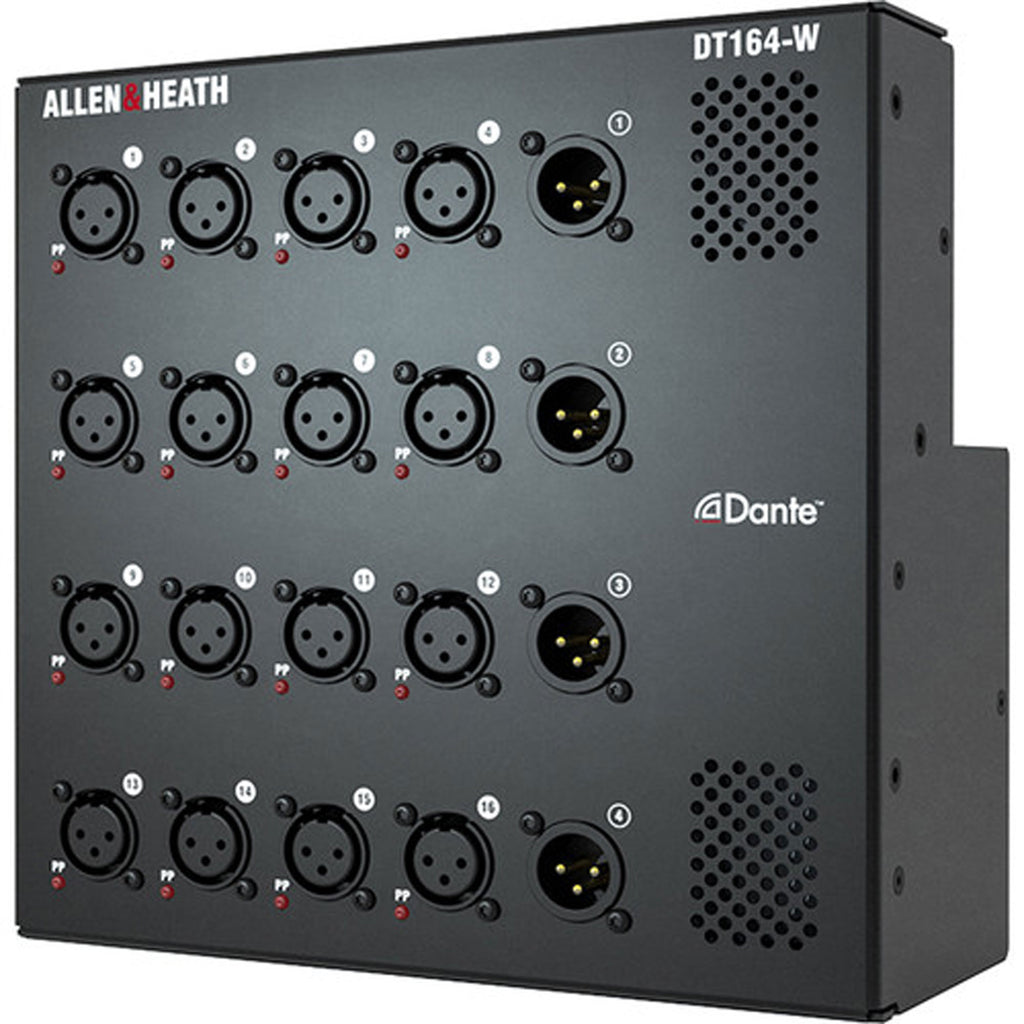 DT164-W offers the acclaimed Allen & Heath preamps, complete with 96kHz converters for best-in-class sound quality over Dante, plus Primary and Secondary ports for daisy-chain or redundancy through secure EtherCon connectors.